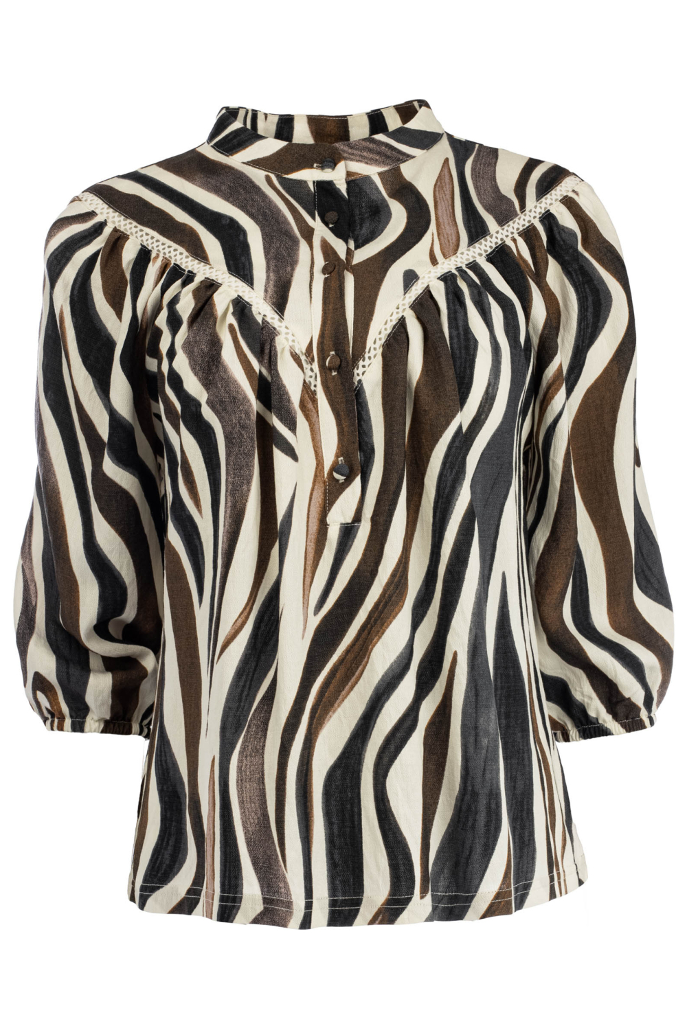 Deze NED dames blouse is een stijlvolle keuze voor elke garderobe. Het high neck design en de levendige animal print in bruine tinten geven het een unieke uitstraling die moeiteloos in het oog springt. De blouse heeft een regular pasvorm, wat zorgt voor een aangename en comfortabele drapering om het lichaam. Gemaakt van 80% viscose en 20% polyamide, biedt deze blouse een zachte touch met een lichte stretch, ideaal voor dagelijks gebruik. De blouse is perfect voor casual gelegenheden en kan makkelijk gecombineerd worden met een nette broek of rok. De 3/4 mouwen en de normale lengte zorgen voor een veelzijdige stijl die geschikt is voor zowel informele meetings als een gezellige lunch. Of je nu naar kantoor gaat of een dagje uit plant, deze blouse houdt je in stijl. Laat je inspireren door de gedurfde patronen en voeg een vleugje flair toe aan je outfit.