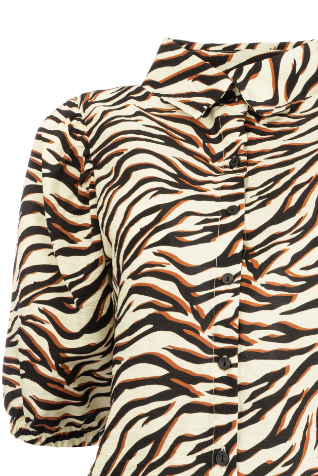 Deze casual blouse van NED is een prachtige toevoeging aan je garderobe. De blouse heeft een opvallend grafisch patroon in bruintinten, wat zorgt voor een speelse yet stijlvolle look. Gemaakt van een mix van 85% viscose en 15% polyamide, biedt deze blouse een zachte en lichte draagervaring. De high neck en knoopsluiting voegen een verfijnde touch toe, terwijl de 3/4 mouwen een luchtige uitstraling geven die perfect is voor zowel warme als koelere dagen. Met zijn normale lengte past deze NED blouse gemakkelijk bij verschillende outfits. Combineer hem bijvoorbeeld met een stijlvolle pantalon voor een semi-formele gelegenheid, of draag hem met een comfortabele jeans voor een meer ontspannen look. Dit exemplaar is ideaal voor dagelijkse situaties, van een dag op kantoor tot een casual lunch met vrienden. De regular fit en het dynamische ontwerp maken deze blouse een veelzijdige keuze voor elke vrouw die houdt van een vleugje patroon in haar kledingkast.