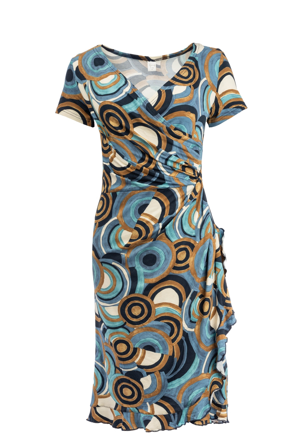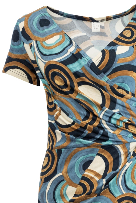Deze stijlvolle jurk van NED is een perfecte toevoeging aan jouw casual garderobe. Met een grafisch patroon in diverse blauwtinten en bruinen, voegt de jurk een speels maar toch verfijnd element toe aan je outfit. De jurk heeft een regular fit en een normale lengte, wat zorgt voor zowel comfort als een flatterende look. De korte mouwen en de luchtige stof, gemaakt van 95% viscose en 5% elastan, maken dit een licht en aangenaam kledingstuk voor dagelijks gebruik. De jurk is voorzien van een elegante V-hals en een strikkoord dat je taille subtiel benadrukt. Dit maakt de jurk ideaal voor zowel informele bijeenkomsten als een dagje uit in de stad. De veelzijdigheid van het ontwerp betekent dat je het makkelijk kunt combineren met je favoriete paar sandalen voor een relaxte vibe, of stylen met hakken voor een meer verzorgde look. Deze jurk van NED is een basisstuk dat geschikt is voor diverse gelegenheden door het hele jaar heen.