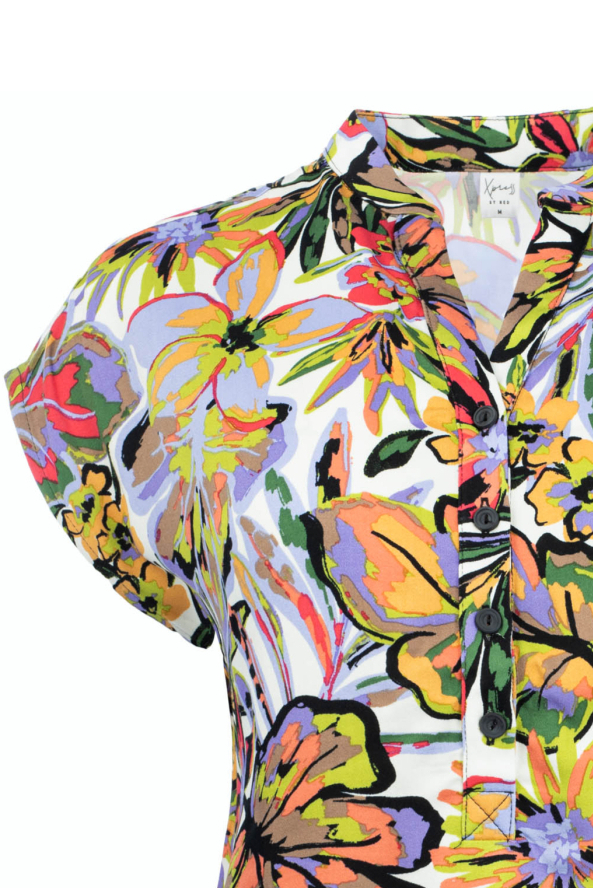Dit ecru T-shirt van NED voor dames is een veelzijdige keuze voor wie houdt van casual stijl met een opvallende twist. Gemaakt van 100% viscose, biedt het een lichte en luchtige stof die comfortabel aanvoelt op de huid. De V-hals met speelse knoopsluiting geeft het shirt een extra detail, terwijl het kleurrijke bloemenpatroon een levendige touch toevoegt aan je outfit. Dankzij de korte mouwen en de regular fit pasvorm zit het T-shirt altijd prettig en geeft het je een moeiteloze uitstraling. Perfect voor diverse gelegenheden, dit T-shirt is een goede match voor zowel ontspannen dagen als informele bijeenkomsten. Combineer het met een lichte jeans voor een casual dagje uit of draag het als statement piece onder een jasje voor een meer gelaagde look. De normale lengte maakt het gemakkelijk te dragen bij verschillende broeken of rokken, waardoor het een echte allrounder is in je garderobe. Voeg met dit NED T-shirt een vleugje kleur en comfort toe aan je dagelijkse stijl.