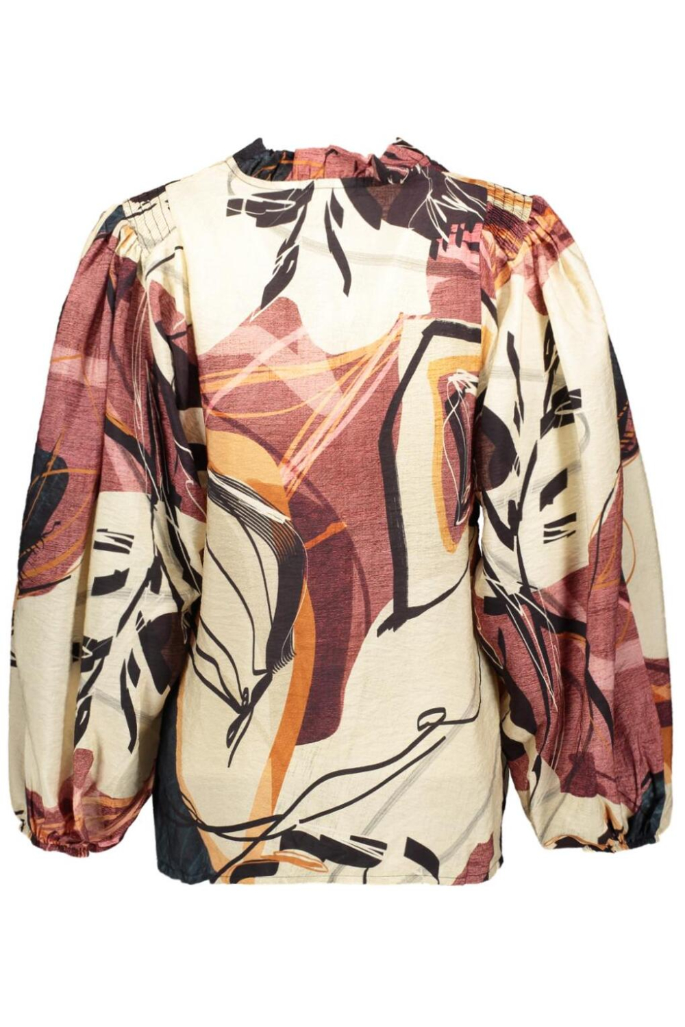 Deze elegante damesblouse van NED is een veelzijdige aanvulling op jouw herfstgarderobe. De blouse heeft een prachtige grafische print die een kunstzinnige uitstraling geeft, perfect voor zowel casual als semi-formele gelegenheden. Gemaakt van een duurzame blend van 86% Viscose Lenzing Ecovero en 14% Polyamide, biedt deze blouse een aangenaam draagcomfort en een lichte glans. De ronde hals en haaksluiting zorgen voor een verfijnde afwerking, terwijl de lange mouwen net dat beetje extra warmte bieden tijdens koelere dagen. Met zijn regular fit en normale lengte is dit een blouse die mooi valt en zich makkelijk laat combineren met zowel een nette pantalon als een casual jeans. De unieke print in herfstkleuren maakt dat deze blouse moeiteloos opvalt en stijl toevoegt aan elke outfit. Of je nu een dag op kantoor hebt of een middagje de stad in gaat, deze blouse past bij verschillende stijlen en gelegenheden. Voeg een paar subtiele sieraden toe, en je bent klaar om de dag stijlvol te beginnen.