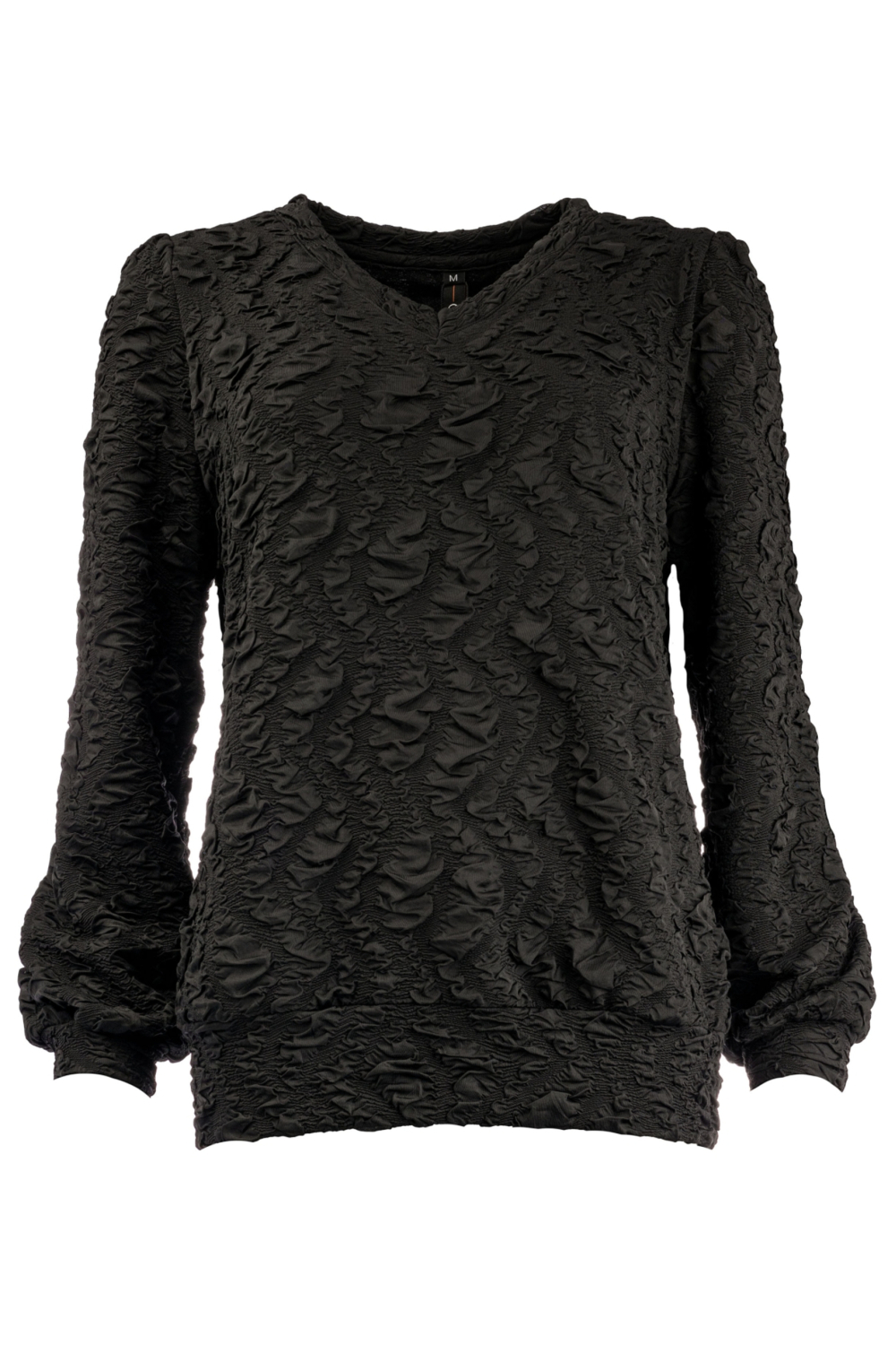 Dit casual zwarte dames T-shirt van NED is een stijlvolle toevoeging voor jouw herfstgarderobe. De unieke structuurpatroon geeft dit T-shirt een bijzonder en trendy uiterlijk. Met een V-hals en lange mouwen, biedt het zowel comfort als een moderne look die je gemakkelijk kunt dragen bij diverse gelegenheden. Of je nu een dagje uit gaat met vrienden of een ontspannen avond thuis doorbrengt, dit shirt is een veelzijdige keuze.