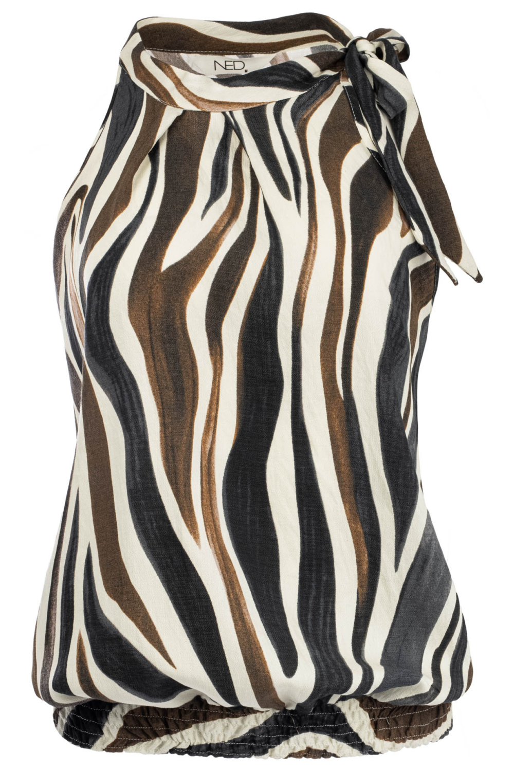 Deze casual dames top van NED, ontworpen met een opvallende gemêleerde print in bruin- en cremetinten, biedt zowel stijl als comfort. De top heeft een colkraag die subtiel gestrikt kan worden, wat een speels accent toevoegt aan de algehele uitstraling. De regular fit en mouwloze afwerking zorgen voor een luchtig en comfortabel draaggevoel, ideaal voor diverse gelegenheden. De mix van 80% viscose en 20% polyamide geeft de top een soepele en duurzame kwaliteit, perfect voor dagelijks gebruik. Deze veelzijdige top past naadloos in zowel een casual als meer formele setting. Draag het met een jeans voor een weekendbrunch met vrienden of combineer het met een nette rok voor een zomerse kantooroutfit. Of je nu naar een ontspannen lunch gaat of een dag op kantoor doorbrengt, deze NED top voegt zeker een stijlvol element toe aan je garderobe.