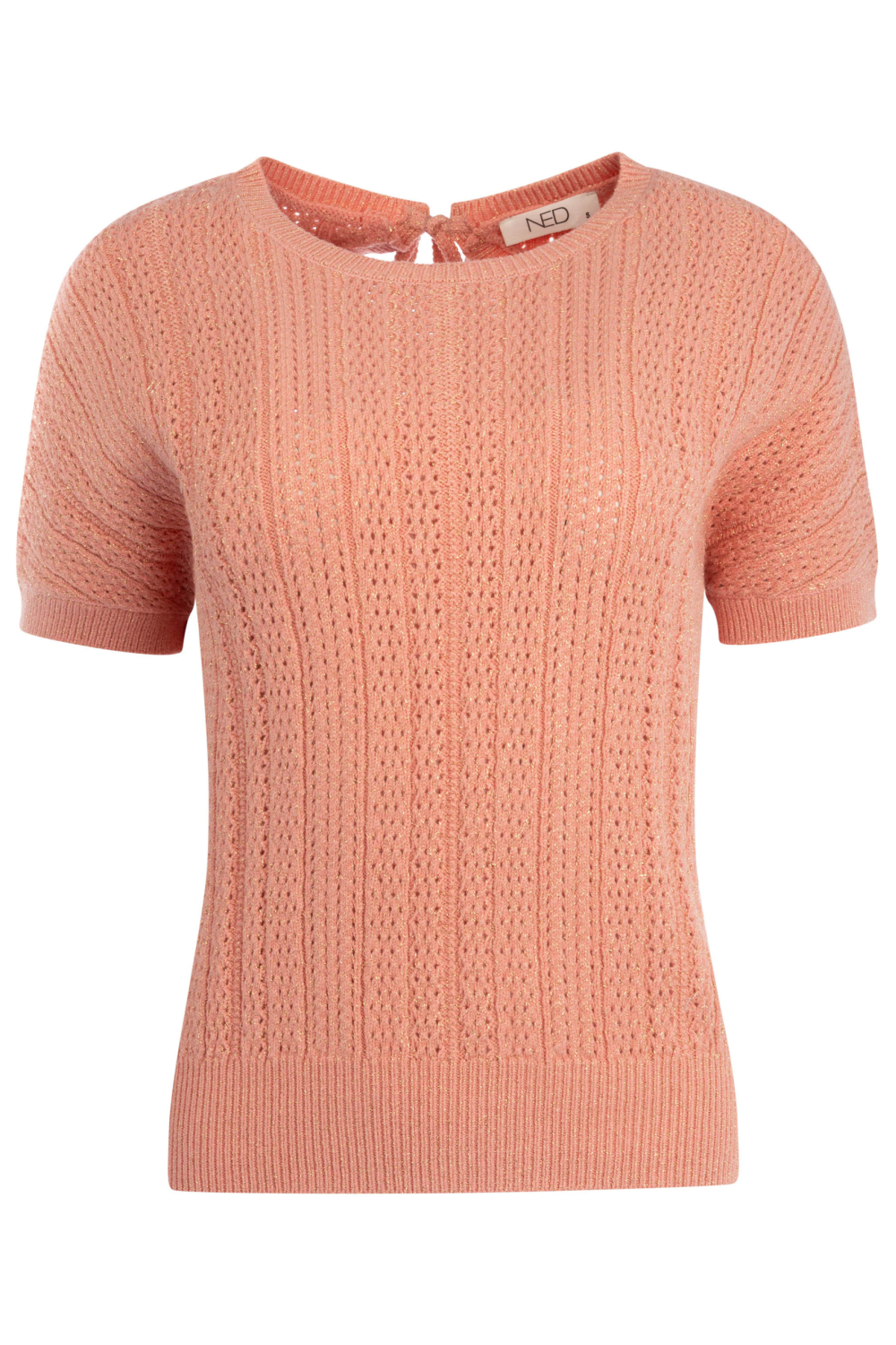 Ontdek de verfijnde charme van deze damestrui van NED, perfect voor de lente. Het breisel heeft een subtiel glitterpatroon, wat een speelse en elegante touch toevoegt aan je outfit. Met een regular fit en korte mouwen, biedt de trui zowel comfort als stijl. De ronde hals en het strikkoord aan de achterzijde geven een extra detail dat zeker in het oog springt. Deze trui is een uitstekende keuze voor diverse gelegenheden, of je nu een dag op kantoor of een ontspannen middag met vrienden hebt. Het normale lengteontwerp zorgt voor een flatterende fit, terwijl de zachte peachy tint een frisse toevoeging is aan je garderobe. Combineer de knitwear met een lichte jeans of rok voor een casual en stijlvolle look. Laat jezelf stralen met de unieke, glinsterende accenten van NED.