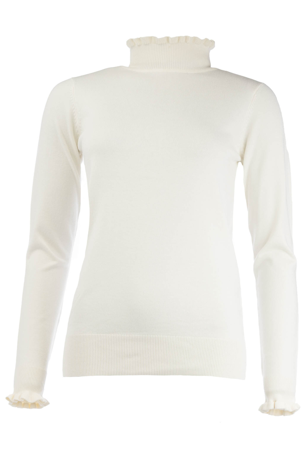 De lange mouwen en subtiele ruches aan de uiteinden voegen een speelse touch toe aan deze tijdloze basic. Dankzij de neutrale kleur en het klassieke design kun je deze trui eenvoudig combineren met zowel jeans als rokken voor een moeiteloze look. Of je nu op zoek bent naar een comfortabele outfit voor een casual dag of een stijlvolle basis voor meer chique gelegenheden, deze NED damestrui biedt je de flexibiliteit die je zoekt zonder concessies te doen aan comfort en stijl.