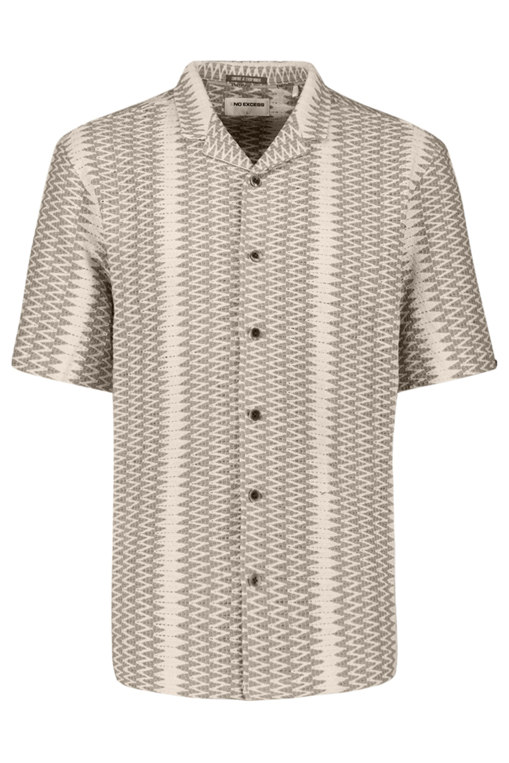 Dit stijlvolle NO-EXCESS overhemd uit de knitwear collectie is een veelzijdige toevoeging aan je zomergarderobe. Met zijn normale pasvorm en korte mouwen biedt het ultiem comfort, terwijl het unieke zigzagpatroon in zachte tinten een modieuze flair toevoegt. Gemaakt van 60% katoen en 40% gerecycled polyester, is dit overhemd niet alleen een duurzame keuze, maar voelt het ook aangenaam op de huid aan. De revers kraag en knoopsluiting geven een subtiele, verfijnde touch die geschikt is voor zowel casual als meer verfijnde gelegenheden. Of je nu naar een zomers feestje gaat of een dagje op kantoor doorbrengt, dit NO-EXCESS overhemd is een perfecte match. Combineer het met een lichte chino of een casual short voor een ontspannen weekendlook. Dankzij de normale lengte is het ook ideaal om over een T-shirt te dragen voor een meer gelaagde outfit. Met zijn tijdloze design en hoogwaardige materialen is dit overhemd een praktische keuze voor de moderne man die waarde hecht aan zowel stijl als duurzaamheid.