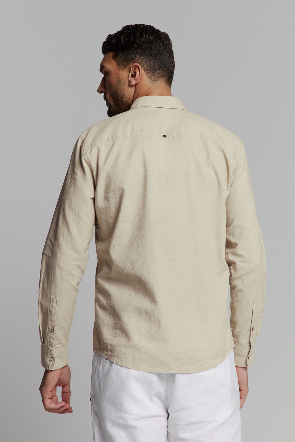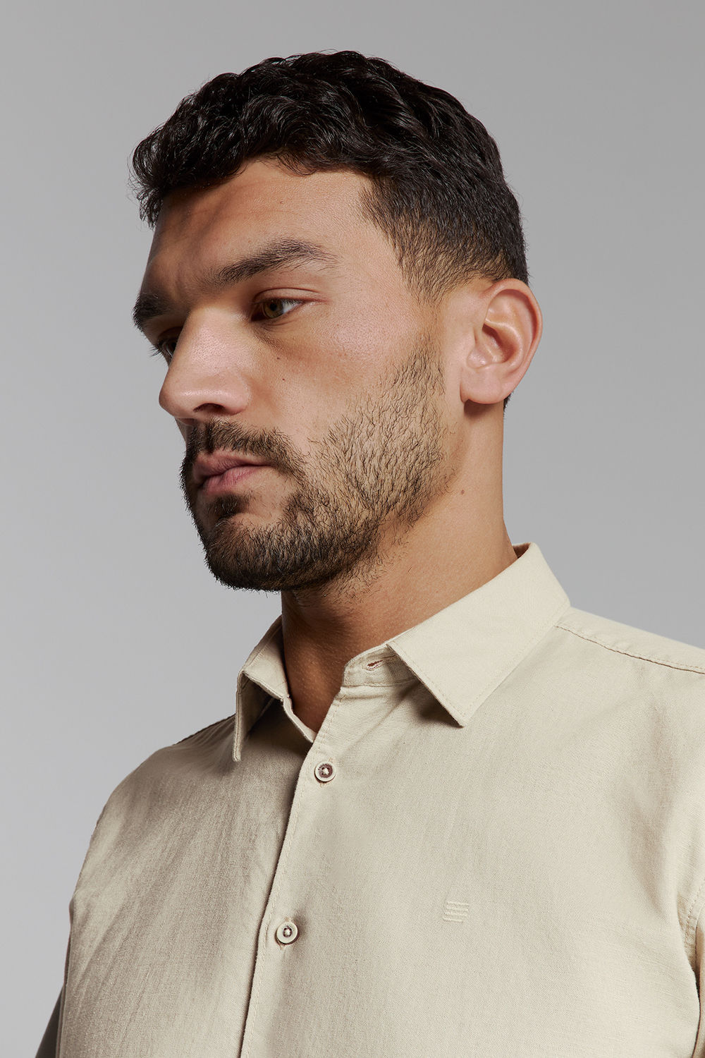 Dit elegante herenoverhemd van NO-EXCESS in de kleur Light Desert is een stijlvolle toevoeging aan je garderobe. Gemaakt van 55% linnen en 45% katoen, biedt dit overhemd een ademende en comfortabele pasvorm die perfect is voor de lente. De gestructureerde stof geeft het overhemd een subtiele, doch verfijnde uitstraling. Met een regular fit en een puntkraag is het zowel casual als netjes te dragen, afhankelijk van de gelegenheid. Dankzij de knoopsluiting aan de voorzijde en de lange mouwen is dit NO-EXCESS overhemd veelzijdig genoeg om te dragen naar een informele afspraak of een stijlvolle avond uit. Combineer het met een luchtige linnen broek voor een ontspannen look, of met een donkere jeans voor een meer geraffineerde uitstraling. Zijn normale lengte en klassieke stijl maken hem een betrouwbare keuze voor verschillende situaties. Dit duurzaam vervaardigde overhemd is een essentiële aanvulling voor de moderne man.