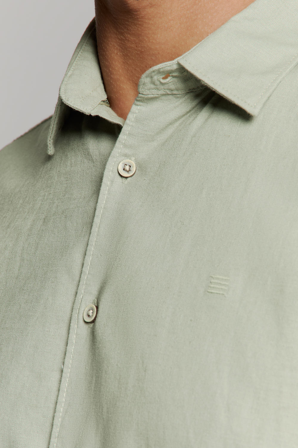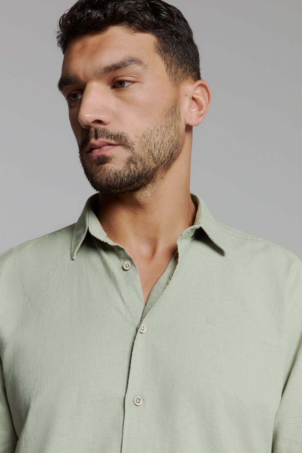 Dit casual overhemd van NO-EXCESS in de kleur 177 LIGHT ARMY is een stijlvolle keuze voor elke zomer. Gemaakt van een hoogwaardige mix van 55% linnen en 45% katoen, biedt het een ademende stof die je koel houdt tijdens warme dagen. De regular fit pasvorm in combinatie met de klassieke puntkraag en knoopsluiting zorgt voor een moeiteloze maar verfijnde uitstraling. De subtiele groene tint geeft een frisse touch aan je outfit. Dankzij het tijdloze design is dit NO-EXCESS overhemd veelzijdig te combineren voor diverse gelegenheden. Of je nu naar een ontspannen brunch gaat of een informele zakelijke afspraak hebt, dit overhemd biedt de juiste balans tussen comfort en stijl. De korte mouwen dragen bij aan een luchtige look die ideaal is voor zomerse dagen. Combineer het met een lichte broek voor een complete casual look die comfort én stijl uitstraalt.