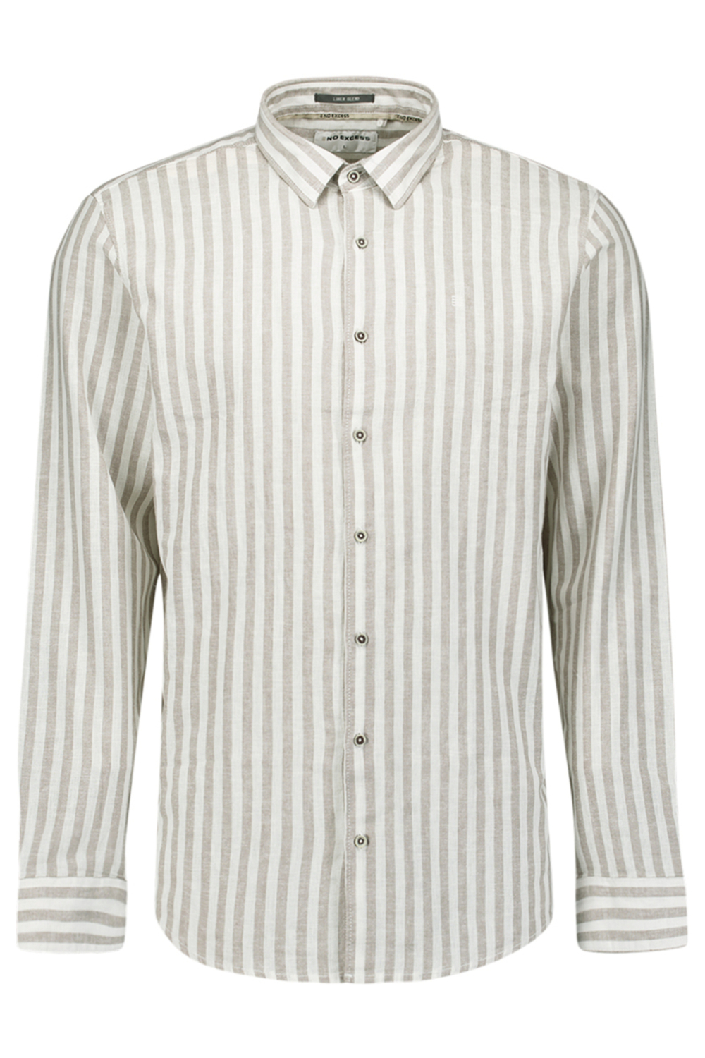 Het stijlvolle taupe streep overhemd van NO-EXCESS is een ideale keuze voor jouw zomergarderobe. Gemaakt van een hoogwaardige mix van 52% linnen en 48% katoen, biedt dit overhemd een ademende en comfortabele ervaring, essentieel voor warmere dagen. Met zijn regular fit en het klassieke ontwerp voorzien van een puntkraag en knoopsluiting, straalt dit overhemd een eigentijdse, casual stijl uit. De subtiele taupe verticale strepen bieden een verfijnde afwerking, waardoor het stuk makkelijk te combineren is met verschillende outfits. Perfect voor diverse gelegenheden, van een casual dag op kantoor tot een ontspannen weekendbrunch. Dit overhemd past prima boven een lichte chino of jeans voor een moeiteloze, nette look. De lange mouwen geven het shirt een veelzijdig karakter, waardoor het draagbaar is in zowel de warmere als koelere avonden. Met het NO-EXCESS taupe streep overhemd ben je altijd verzekerd van een moderne en stijlvolle uitstraling.