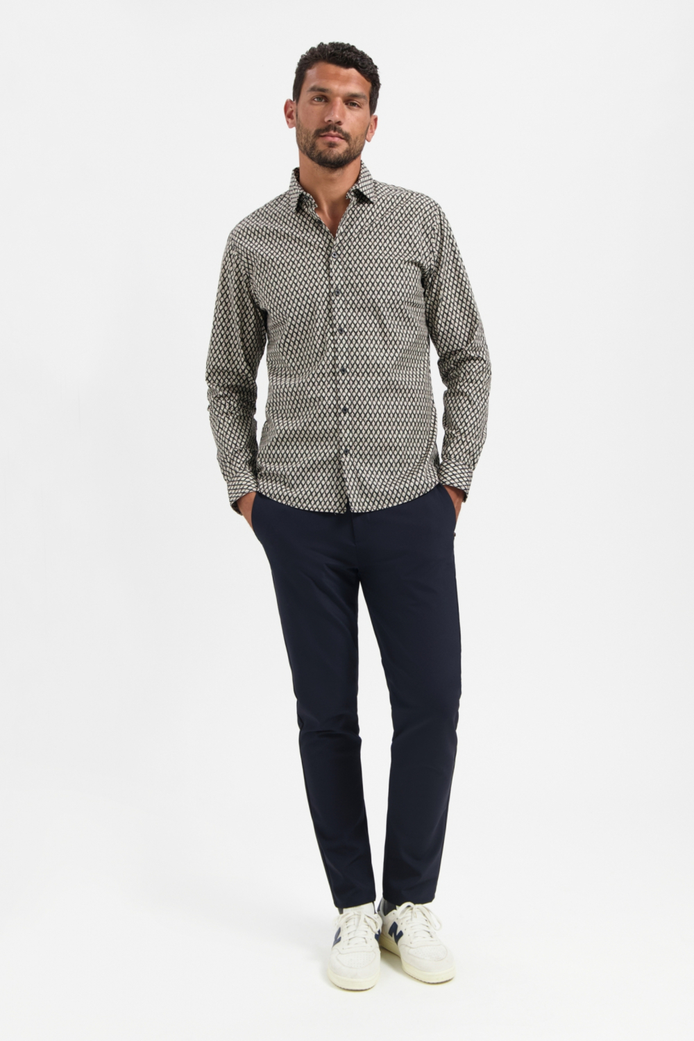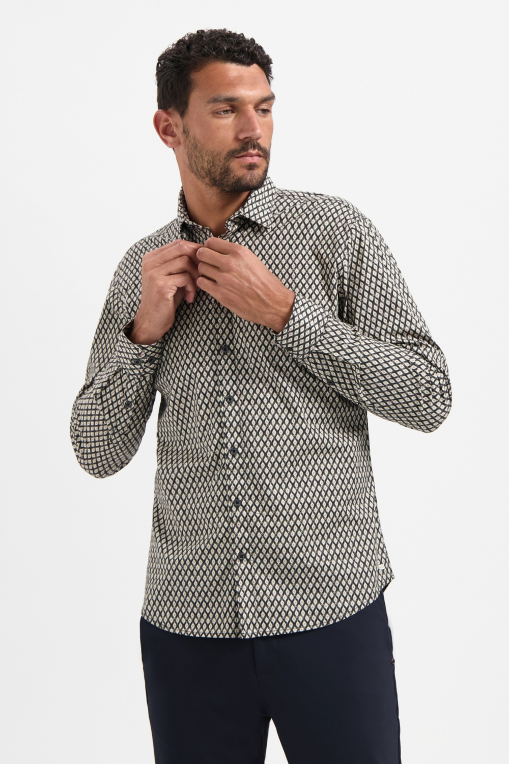 Dit grafisch gedessineerde overhemd van NO-EXCESS is een stijlvolle toevoeging aan je herfstgarderobe. Met een regular fit biedt het zowel comfort als een nette uitstraling. Gemaakt van 97% katoen en 3% elastaan, voelt het overhemd zacht aan en biedt het een subtiele stretch voor extra bewegingsvrijheid. De zwarte basiskleur maakt het patroon nog indrukwekkender, waardoor het geschikt is voor zowel casual als semi-formele gelegenheden. De klassieke puntkraag en de knopenrij geven het overhemd een tijdloze uitstraling. De lange mouwen maken het perfect voor koelere dagen, terwijl het grafische patroon zorgt voor een moderne touch. Combineer het met een donkere jeans voor een relaxte look of draag het onder een blazer naar een zakelijke meeting. Dit NO-EXCESS overhemd valt soepel en past zich makkelijk aan elke outfit aan. Een veelzijdig stuk dat in geen enkele herengarderobe mag ontbreken.