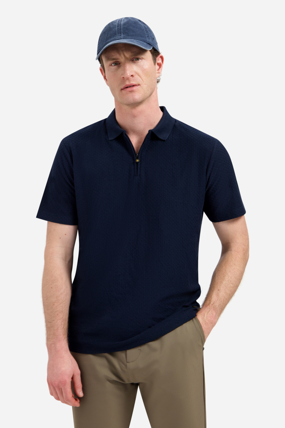 Deze navy polo van NO-EXCESS is een comfortabele toevoeging aan je garderobe. Met een regular fit en gemaakt van 52% katoen en 48% polyester, biedt deze polo een ademende en soepele feel. De structuur in de stof voegt een subtiele extra dimensie toe. De puntkraag en de praktische ritssluiting geven het een moderne twist, waardoor het eenvoudig aan- en uittrekken is. De korte mouwen maken deze NO-EXCESS polo ideaal voor de warmere lentedagen. Het is een veelzijdig stuk dat goed samengaat met zowel casual jeans als een nette broek. Draag het naar een informele bijeenkomst of een zonnige dag in het park. De diepe, nachtelijke kleur zorgt ervoor dat je er altijd stijlvol uitziet, terwijl het normale lengteontwerp comfort biedt. Of je nu een dagje uit plant of gewoon een ontspannen dag wilt doorbrengen, deze polo is een perfecte keuze.