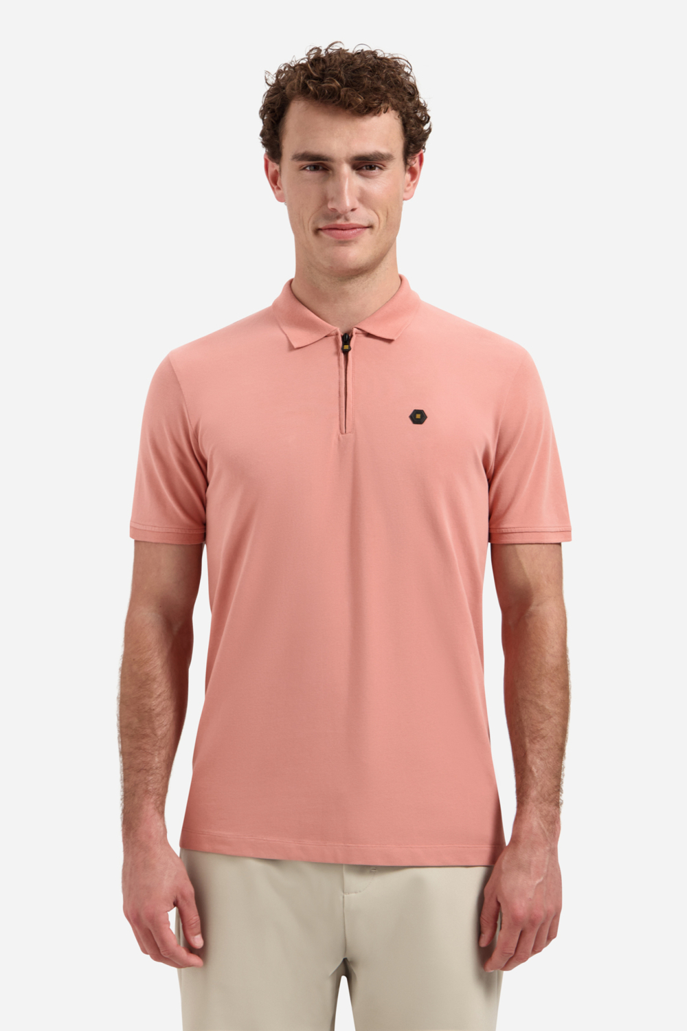 Deze NO-EXCESS heren polo in een frisse coral kleur brengt een vleugje stijl in je zomergarderobe. Gemaakt van een zachte katoenmix met 95% katoen en 5% elastan, biedt deze polo optimale comfort en flexibiliteit voor dagelijks gebruik. De gemêleerde stof geeft een subtiele textuur, terwijl de rits sluiting aan de voorkant zorgt voor een eigentijdse twist. De puntkraag voegt een klassiek element toe aan het moderne ontwerp. Met zijn regular fit en korte mouwen, is deze polo een ideale keuze voor casual zomerdagen. De normale lengte maakt hem makkelijk te combineren met zowel shorts als chino's voor een zorgeloze en stijlvolle uitstraling. De subtiele branding op de borst geeft een geraffineerde touch aan het geheel. Draag deze NO-EXCESS polo tijdens een ontspannen weekend of een informele bijeenkomst. Hij past perfect in een laid-back setting, terwijl hij tegelijkertijd voldoende polijsting biedt voor een casual chic look.