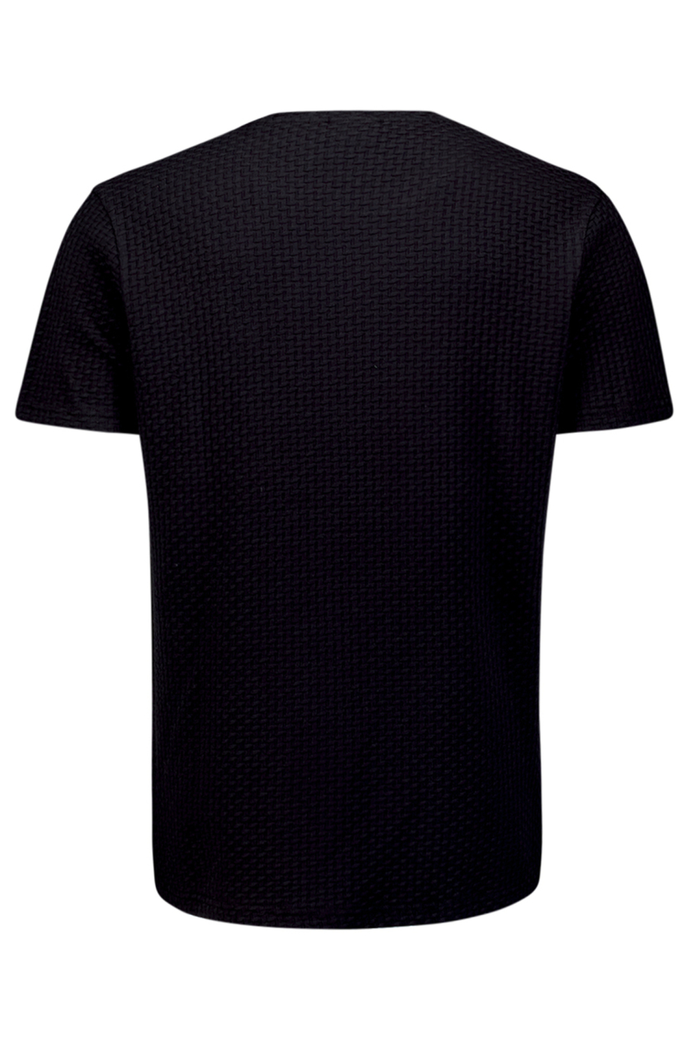 Dit zwarte heren T-shirt van NO-EXCESS biedt een casual stijl met een uniek structuurpatroon dat subtiel opvalt. Gemaakt van 100% katoen, voelt het T-shirt zacht en comfortabel aan, perfect voor seizoenen als de herfst. De regular fit zorgt ervoor dat het prettig draagt, terwijl de ronde hals en korte mouwen bijdragen aan de veelzijdige uitstraling. Ideaal voor dagelijkse activiteiten of een ontspannen dagje uit. Met zijn tijdloze en eenvoudige ontwerp is dit T-shirt een uitstekende basis voor verschillende outfits. Combineer het met een jeans voor een casual look of draag het onder een blazer voor een meer geklede gelegenheid. Of je nu de stad in gaat of een avondje met vrienden gepland hebt, dit T-shirt biedt zowel comfort als stijl. Bovendien maakt de normale lengte het makkelijk te stylen met diverse broeken en schoenen. Voeg dit duurzame stuk toe aan je garderobe en geniet van de veelzijdigheid die het biedt.