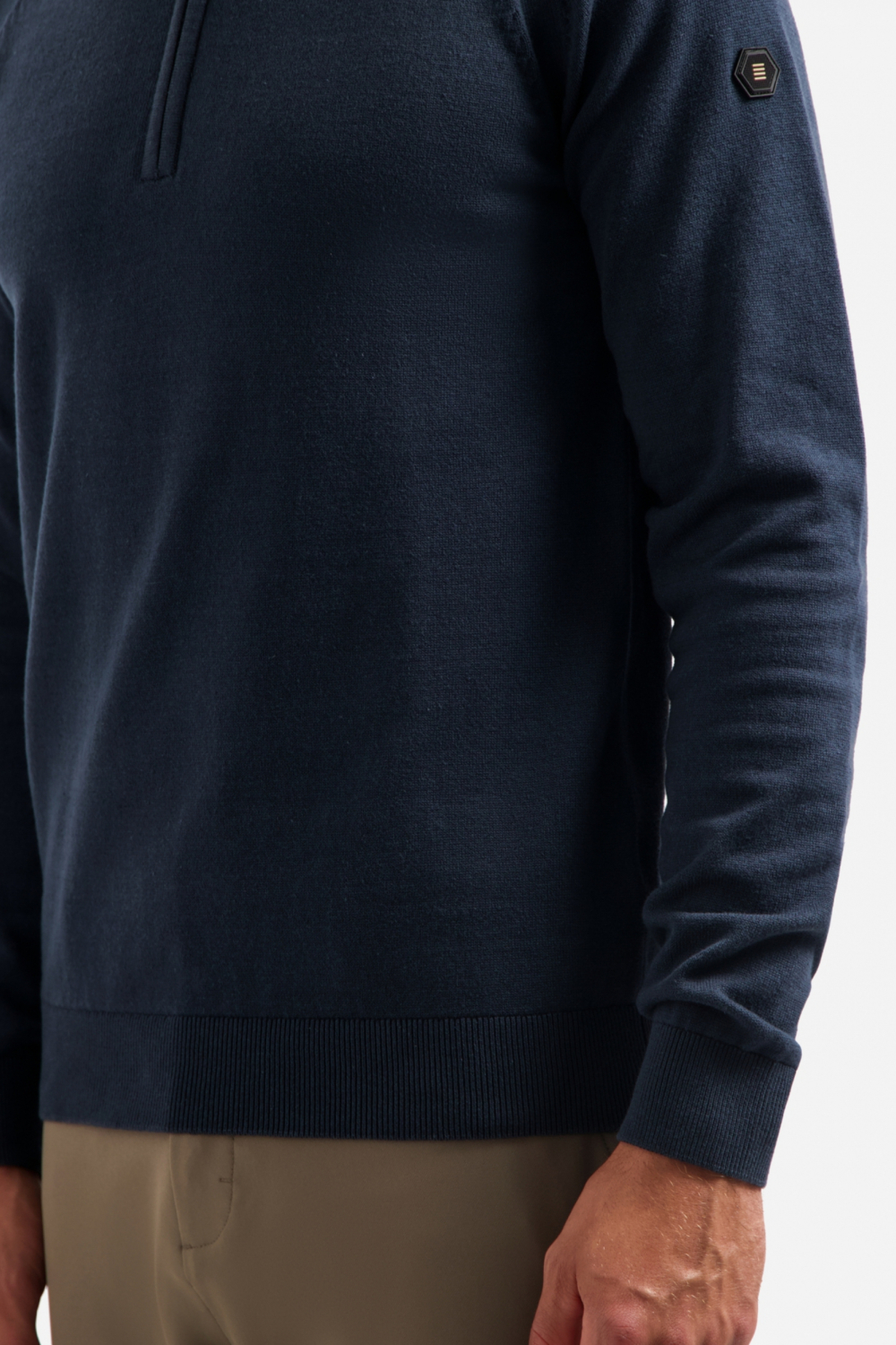 Deze veelzijdige knitwear trui van NO-EXCESS straalt eenvoud en comfort uit in de kleur 078 Night. De trui, geschikt voor heren, heeft een ontspannen regular fit, wat zorgt voor een prettig draagcomfort. De high neck met rits geeft een stijlvolle twist, ideaal voor de koude winterdagen. De combinatie van 90% katoen en 10% nylon zorgt voor een zachte en duurzame kwaliteit, die prettig aanvoelt op de huid. Met zijn lange mouwen en normale lengte is deze trui een efficiënte keuze voor diverse gelegenheden. Of je nu een ontspannen dag thuis doorbrengt of onderweg bent naar een informele bijeenkomst; deze trui biedt een stijlvolle en casual uitstraling. Combineer hem simpelweg met een nette chino of een jeans voor een totaal look die zowel modern als tijdloos aanvoelt. Dankzij het subtiele logo op de mouw blijft de uitstraling steeds verfijnd en veelzijdig.