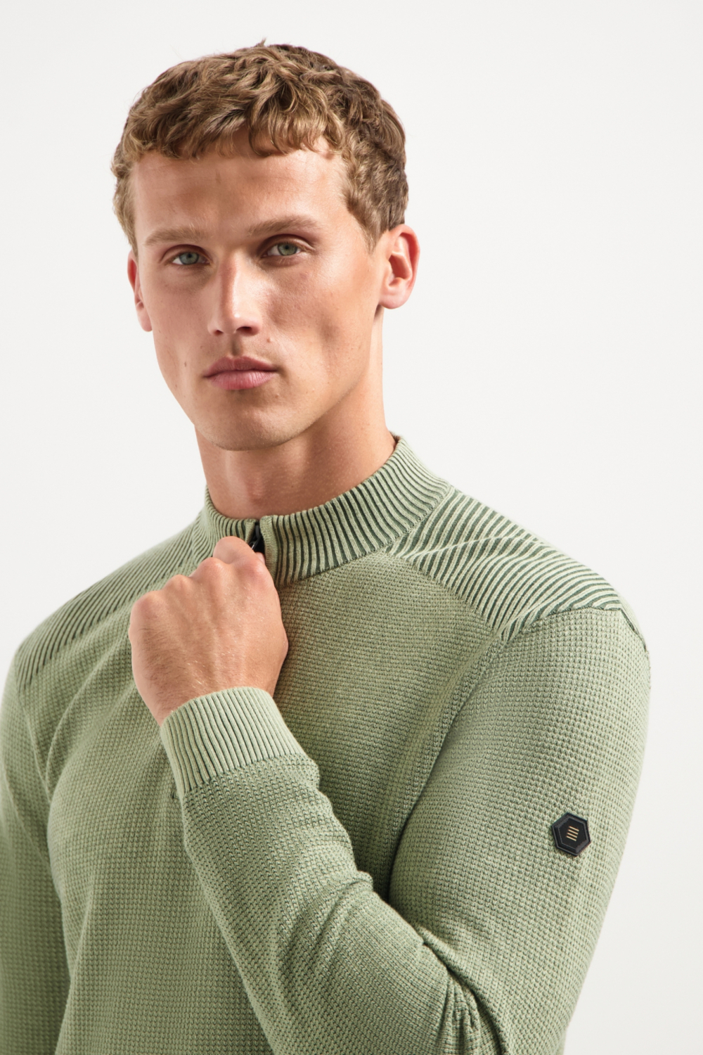 Deze 197 LIGHT MOSS trui van NO-EXCESS is een stijlvolle keuze voor de herfst. De structuur in het breisel geeft het kledingstuk een subtiele textuur, terwijl de high neck met ritssluiting zorgt voor een moderne touch. Deze trui is gemaakt van 100% katoen en biedt daardoor een comfortabele pasvorm. De regular fit sluit mooi aan zonder te strak aan te voelen, ideaal voor een dagelijkse look.