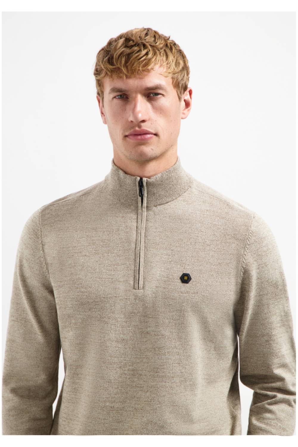 Deze gemêleerde trui van NO-EXCESS is een stijlvolle toevoeging aan je garderobe. De trui heeft een regular fit pasvorm en is uitgevoerd in een fraaie zandkleur die makkelijk te combineren is met diverse outfits. Gemaakt van een duurzame mix van 34% viscose, 34% katoen en 32% polyester, biedt deze knitwear een optimaal draagcomfort. De trui is voorzien van een hoge kraag met een praktische rits, zodat je hem makkelijk kunt aanpassen aan elke temperatuur en gelegenheid.