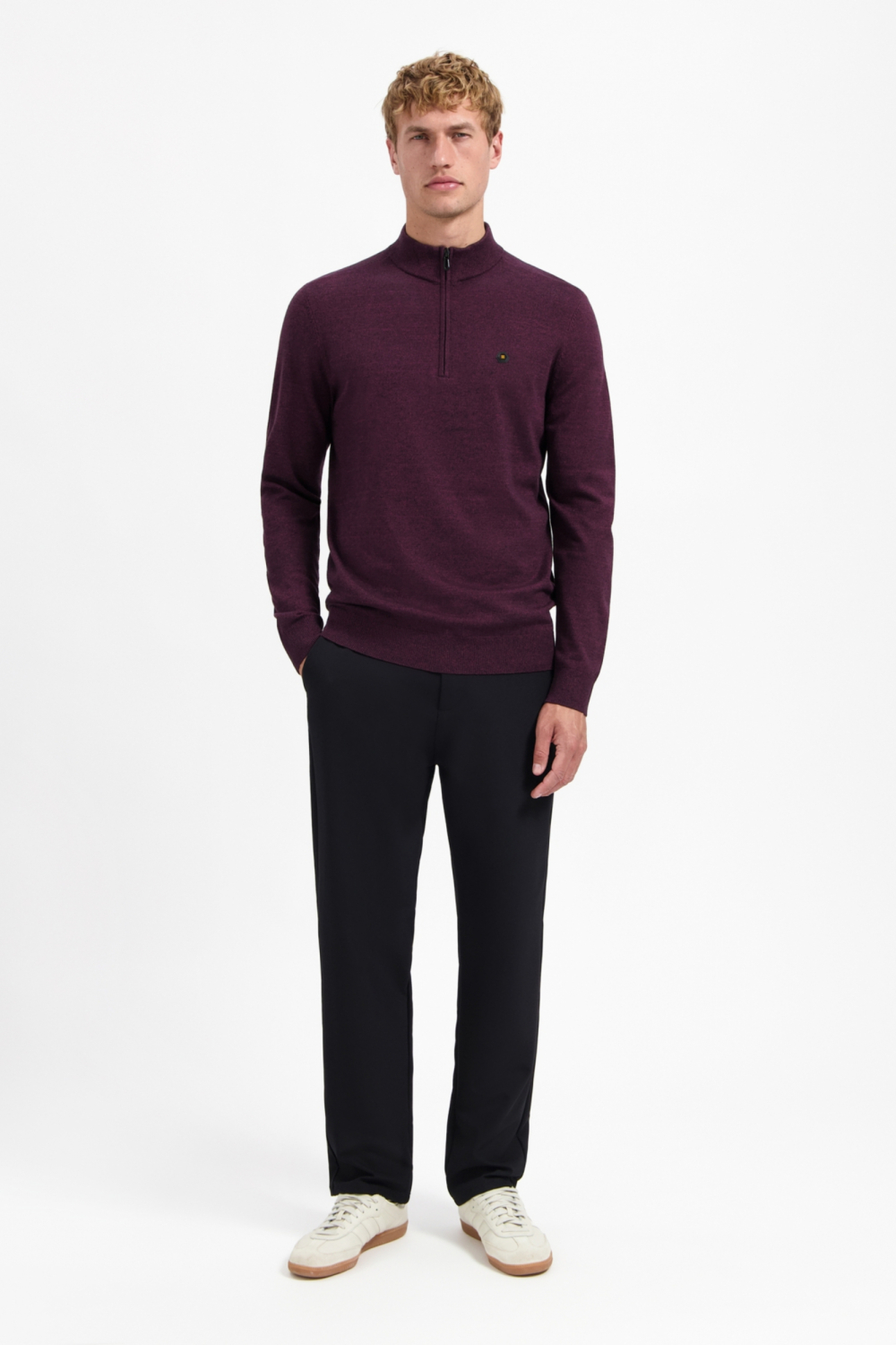 Deze gemêleerde trui van NO-EXCESS in de kleur 164 DARK WINE is een stijlvolle keuze voor het najaar. Met een samenstelling van 34% katoen, 34% viscose en 32% polyester, biedt deze trui een comfortabele en duurzame stof die geschikt is voor elke dag. De trui heeft een high neck met een rits, wat niet alleen een moderne uitstraling geeft maar ook zorgt voor extra warmte op frisse dagen. De regular fit pasvorm maakt hem perfect voor een relaxte of meer geklede look, afhankelijk van je voorkeur. Dankzij het tijdloze ontwerp is deze knitwear trui ideaal voor verschillende gelegenheden. Combineer hem met een nette broek voor een avondje uit of draag hem casual met een jeans voor een dagje in de stad. De lange mouwen en normale lengte zorgen voor voldoende bedekking en comfort, terwijl de subtiele details zoals het logo op de borst een verfijnde touch geven. De NO-EXCESS trui is een veelzijdig item dat onmisbaar is in je herfstartikelencollectie.