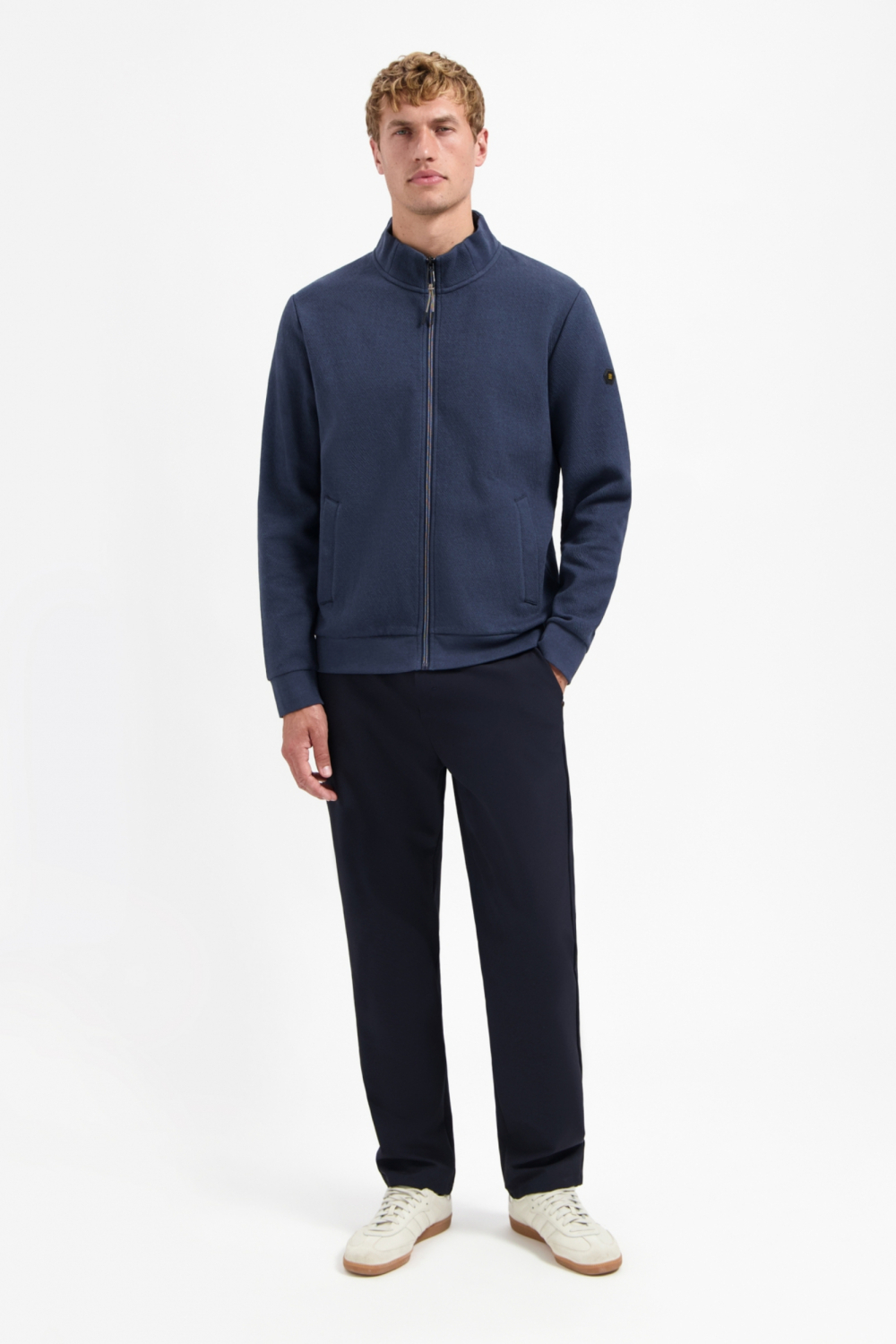 Maak kennis met dit stijlvolle vest van NO-EXCESS, een veelzijdige aanvulling voor je herfstgarderobe. Dit vest in de kleur 078 Night is gemaakt van een zachte en duurzame mix van 54% katoen, 44% polyester en 2% elastan. Het regular fit ontwerp met een high neck en ritssluiting biedt zowel comfort als stijl, terwijl de structuur in de stof een subtiel, modern detail toevoegt. De steekzakken zijn niet alleen praktisch maar versterken ook de casual look van het vest. Dit vest is ideaal voor diverse gelegenheden, van een ontspannen dag thuis tot een avondje uit met vrienden. Combineer het met een jeans voor een casual outfit of draag het over een nette blouse voor een meer geklede uitstraling. Met lange mouwen en normale lengte, biedt dit NO-EXCESS vest een tijdloze stijl die je gemakkelijk kunt matchen met andere kledingstukken. Of je nu op kantoor bent of een herfstwandeling maakt, dit vest is een betrouwbare keuze voor elke gelegenheid.