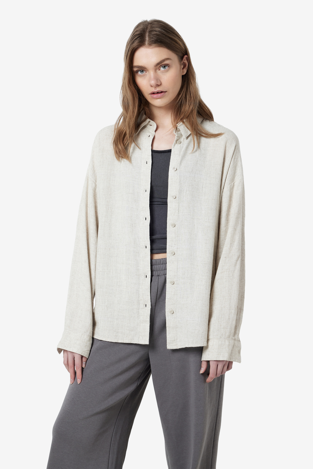 Deze gemêleerde blouse van Noisy may is een veelzijdige aanwinst voor je garderobe. Met een casual uitstraling en een oversized pasvorm biedt deze damesblouse een ontspannen, modieuze stijl. De blouse heeft een natuurlijke kleur en is vervaardigd uit 77% viscose en 23% linnen, wat zorgt voor een luchtige en comfortabele draagervaring. De puntkraag en knoopsluiting geven het geheel een verfijnde touch, zonder aan comfort in te boeten. De blouse is perfect voor de lente en biedt veelzijdigheid in je dagelijkse outfit. Of je nu een dagje uit gaat of een gezellige lunchafspraak hebt, deze blouse past bij elke gelegenheid. Dankzij de normale lengte en lange mouwen is hij gemakkelijk te combineren met een jeans of een relaxte broek voor een moeiteloze look. Voel je zelfverzekerd in deze Noisy may blouse die zowel stijl als comfort combineert.