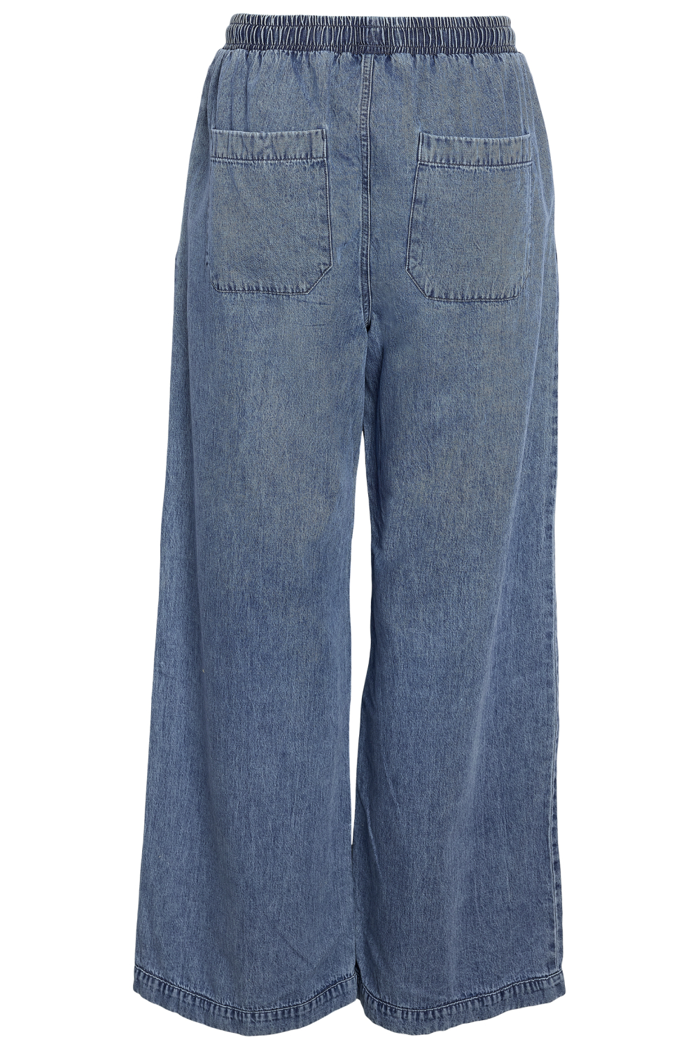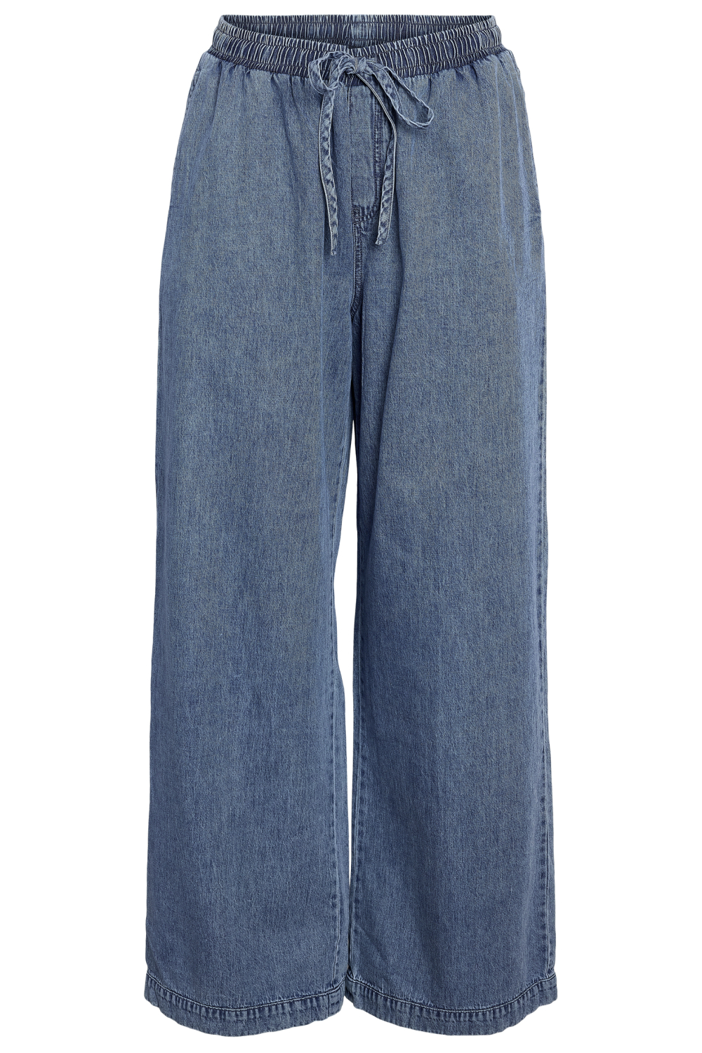 De Noisy may denim broek is een veelzijdige aanvulling in je garderobe. Deze damesbroek heeft een stijlvolle medium blue denim kleur en is vervaardigd van 100% katoen, waardoor hij zowel zacht als duurzaam is. De wide leg pasvorm biedt een comfortabele en modieuze uitstraling, ideaal voor diverse gelegenheden. Met een elastische boord en een trekkoordsluiting is deze broek gemakkelijk aan te passen, terwijl de steekzakken niet alleen praktisch, maar ook subtiel van design zijn.