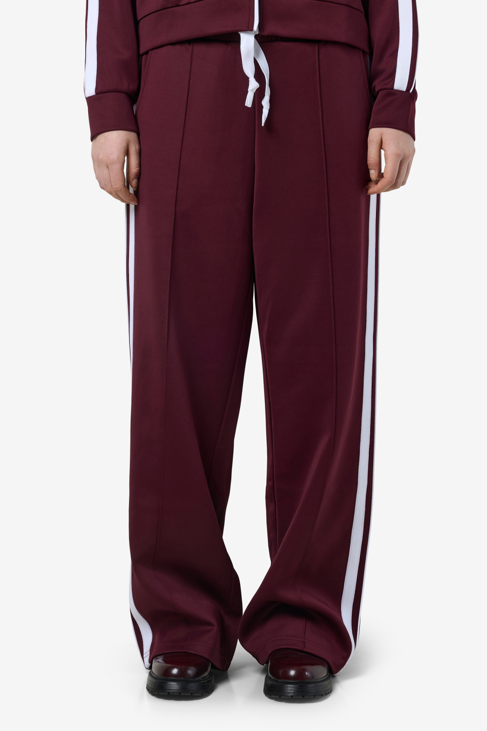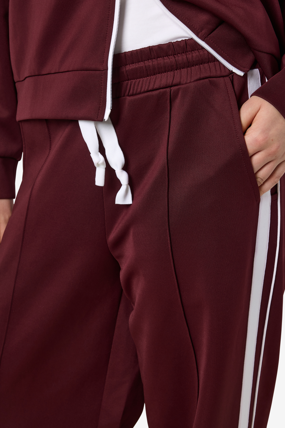 Deze casual broek van Noisy May, uitgevoerd in de kleur Windsor Wine met witte strepen, valt direct op door zijn sportieve uitstraling. De regular fit en de elastische boord met trekkoord zorgen voor een comfortabele pasvorm, ideaal voor een relaxte dag. Gemaakt van een mix van 96% polyester en 4% elastaan, biedt deze broek zowel flexibiliteit als duurzaamheid. De subtiele witte strepen langs de zijkanten geven een modern accent aan het geheel, waardoor je altijd stijlvol voor de dag komt. De broek is voorzien van handige steekzakken, zodat je makkelijk je essentiële spullen bij de hand kunt houden. Dankzij de normale lengte en de regular waist, kun je deze broek moeiteloos combineren met verschillende tops, of je nu kiest voor een casual sweater of een meer verfijnde blouse. Deze broek is perfect voor dagelijkse activiteiten, of het nu een gezellige middag met vrienden is of een ontspannen dag thuis. Met het veelzijdige ontwerp van Noisy May, ben je altijd voorbereid op elke situatie.