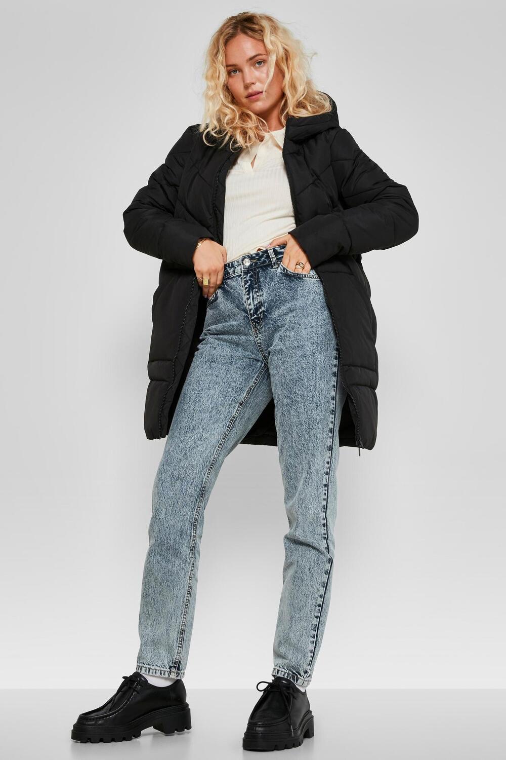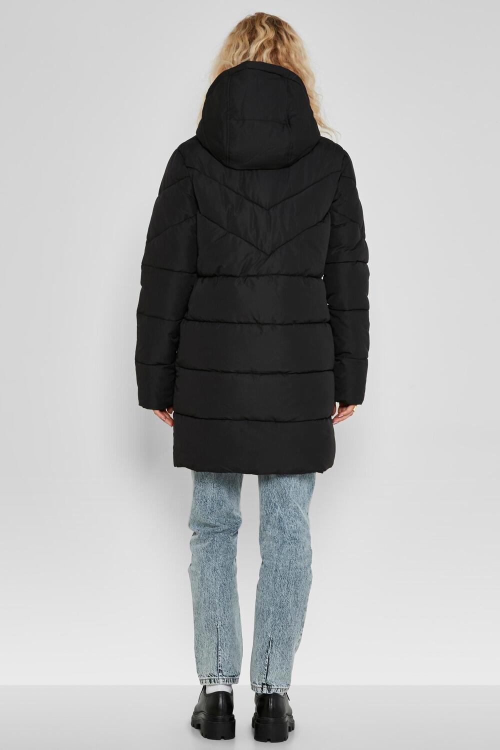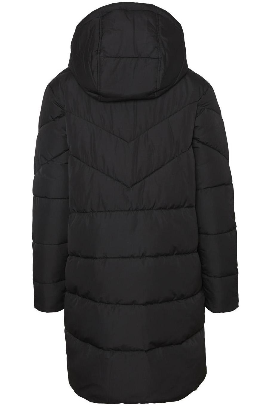 Halflange gewatteerde winterjas van Noisy May. Dit model heeft lange mouwen en een vaste capuchon. De jas sluit met een rits en heeft twee steekzakken aan de voorkant.
