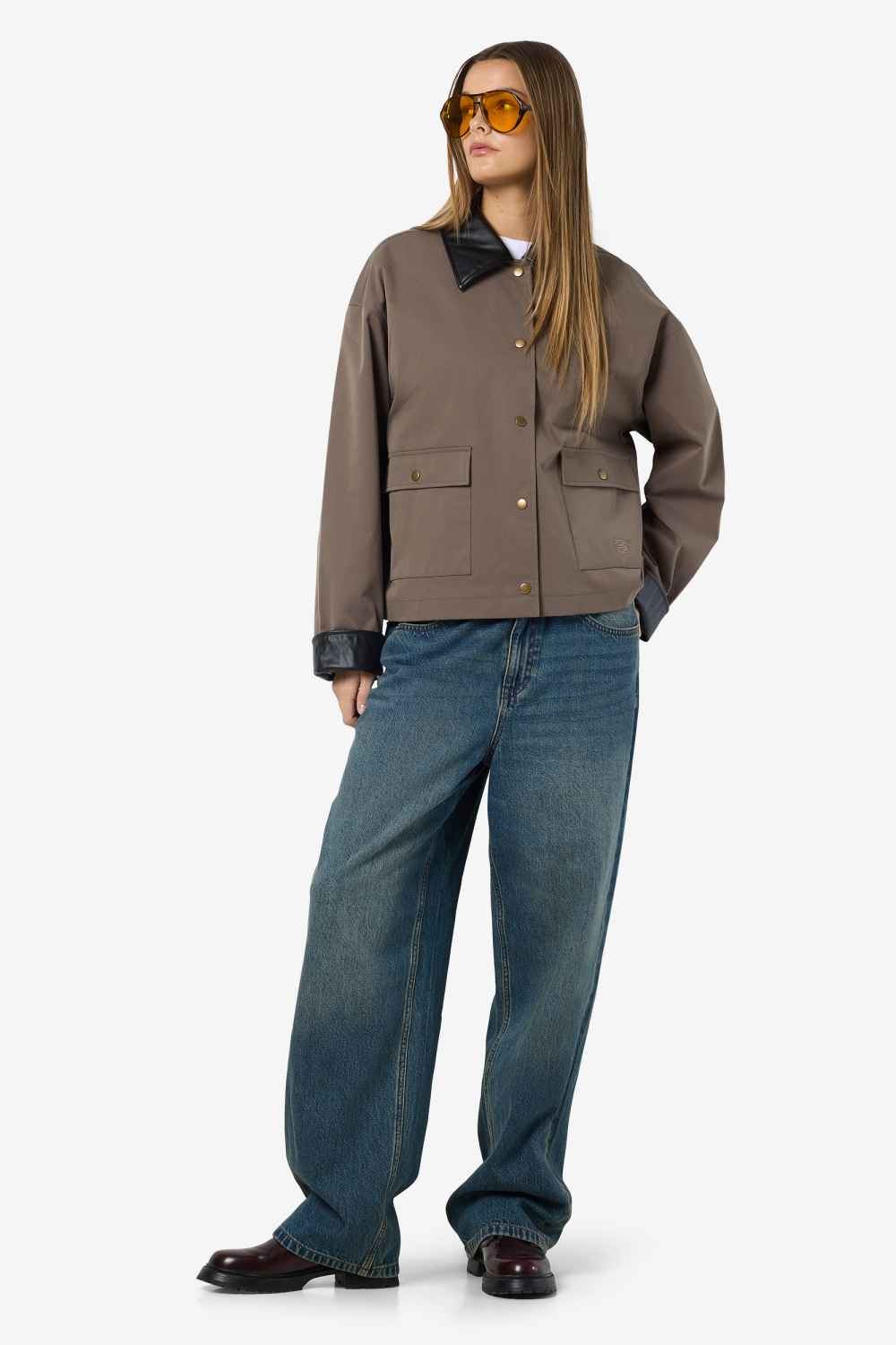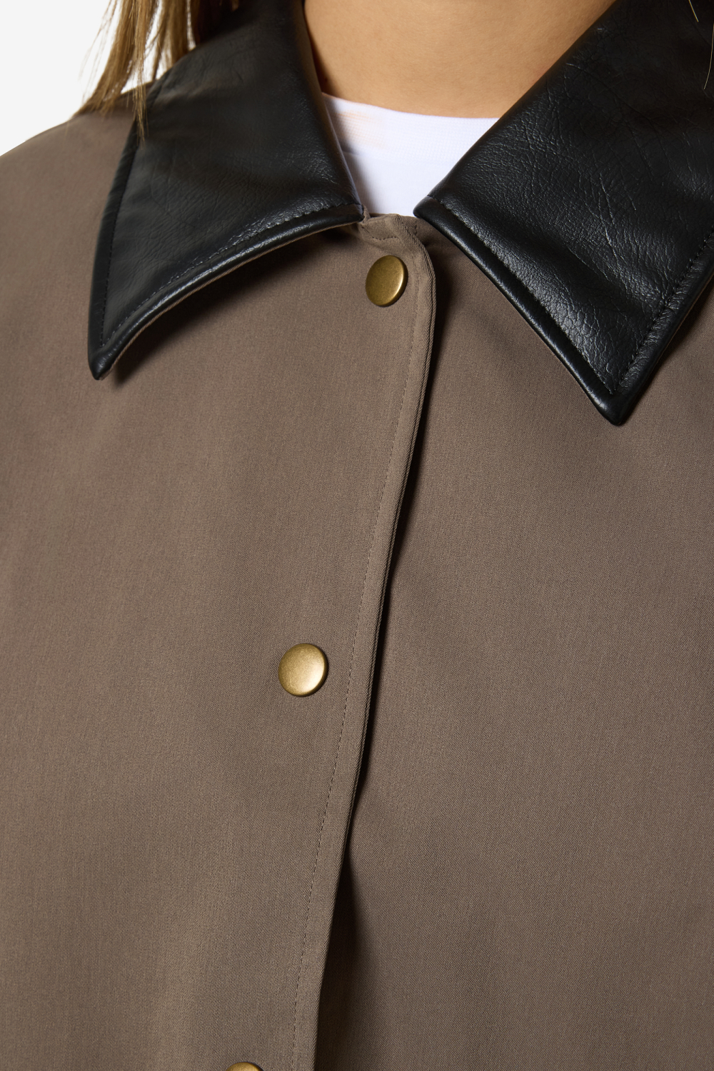 De Noisy May jas in Morel/Black is een stijlvolle keuze voor deze herfst. Met een regular fit is deze jas ontworpen om je een comfortabele ervaring te bieden, en is hij ideaal voor alledaags gebruik. De opvallende puntkraag en de details van kunstleer op de kraag en manchetten geven de jas een eigentijdse look. Dankzij de drukknoopsluiting kun je hem gemakkelijk dragen en uittrekken. Het gebruik van 100% polyester zorgt voor een lichtgewicht en onderhoudsvriendelijke stof.