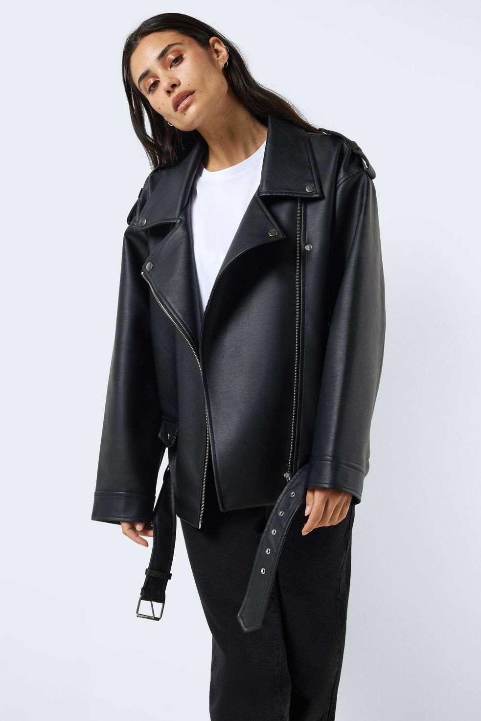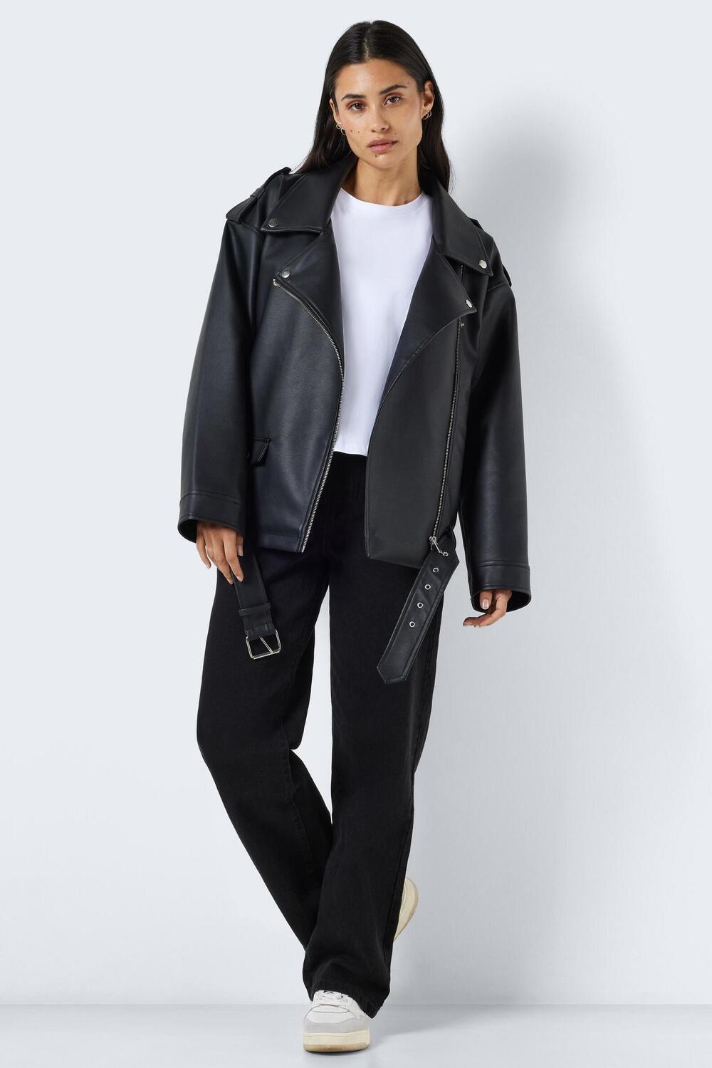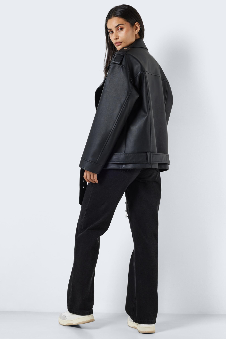 Imitatie lederen jas van Noisy May met lange mouwen en een reversekraag. De jas heeft twee ritszakken aan de voorkant en sluit met een rits.