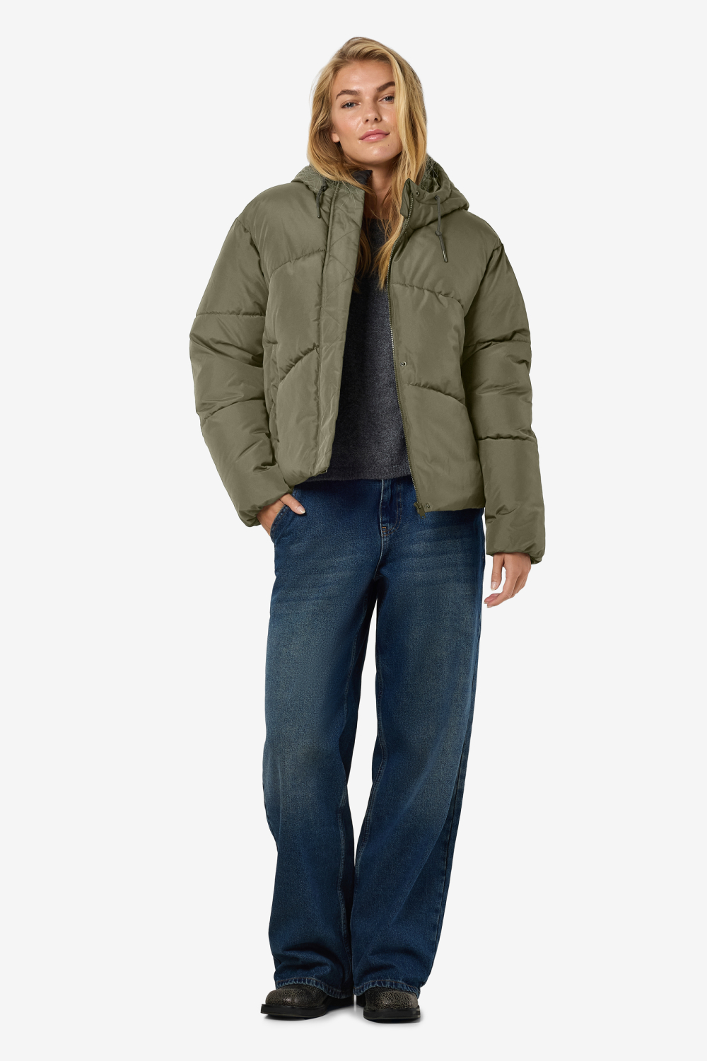 Deze casual winterjas van Noisy May, uitgevoerd in de kleur Kalamata, is een praktische keuze voor de koude maanden. De jas heeft een regular pasvorm en is vervaardigd van 100% polyester, wat zorgt voor een duurzame en warme ervaring. De gewatteerde voering biedt extra bescherming tegen de kou. Met de combinatie van een knoop- en ritssluiting blijft de warmte goed behouden. De capuchon met trekkoord voegt niet alleen een stijlvol detail toe maar beschermt je ook tegen wind en regen. De lange mouwen en steekzakken maken deze jas ideaal voor alledaagse uitstapjes in de winter. Of je nu een wandeling maakt in het park of onderweg bent naar een casual bijeenkomst, deze jas biedt comfort en stijl. Dankzij de neutrale kleur is het gemakkelijk te combineren met verschillende outfits, van jeans tot jurken. Voeg deze veelzijdige jas toe aan je garderobe en je bent klaar voor elke winterse gelegenheid. Meer informatie: De totale lengte is 63cm lang.