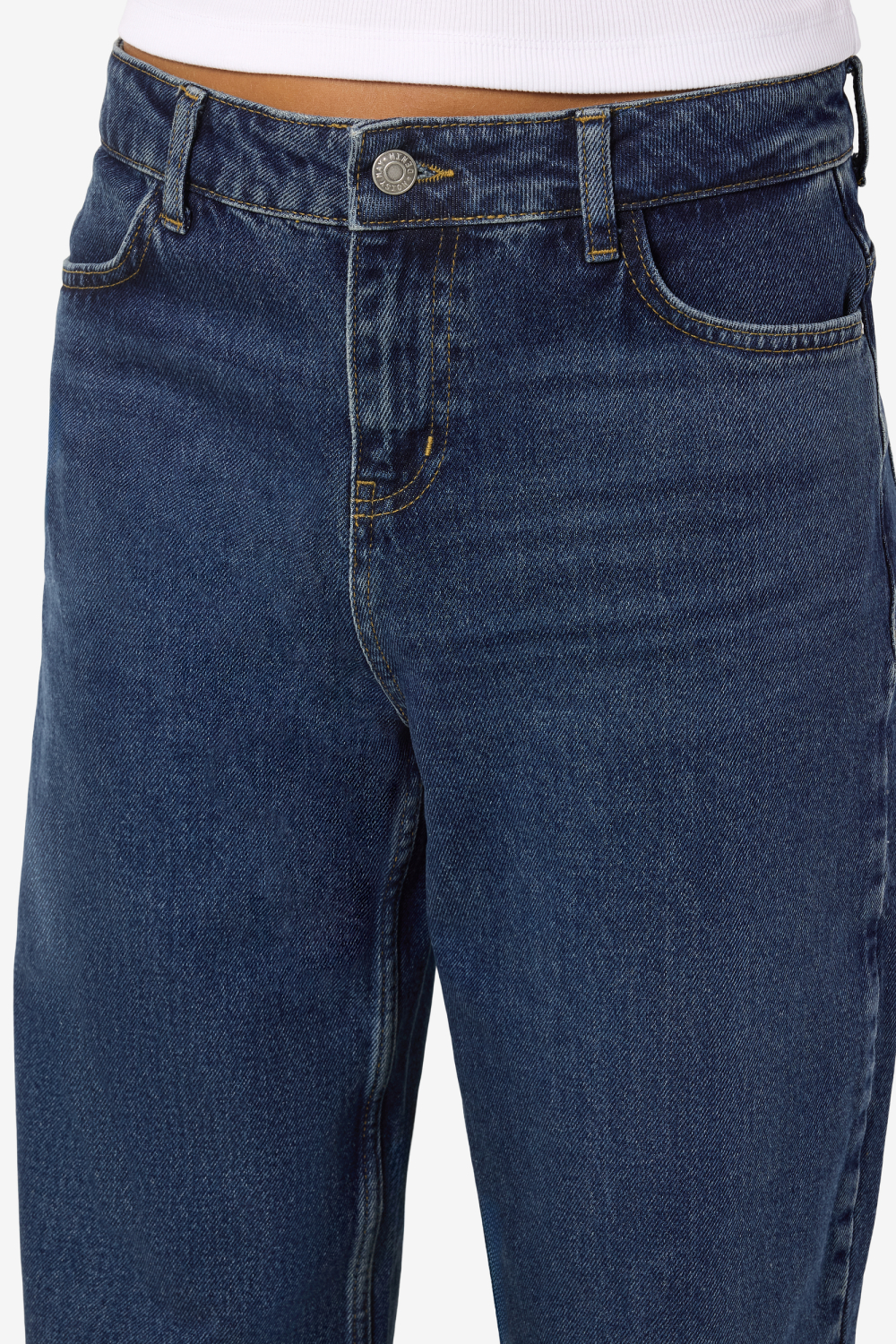 Deze dark blue denim jeans van Noisy May is een onmiskenbare aanwinst voor je garderobe. De relaxed fit pasvorm biedt een comfortabele en losse dragerervaring, ideaal voor een ontspannen dag. Met zijn klassieke 5-pocket ontwerp en stevige knoop- en ritssluiting straalt deze jeans zowel eenvoud als stijl uit. Gemaakt van 100% katoen, houdt hij je de hele dag door comfortabel, terwijl de regular waist zorgt voor een tijdloze en veelzijdige uitstraling.Dankzij de diepblauwe kleur zijn deze jeans eenvoudig te combineren met verschillende stijlen. Of je nu een casual top draagt voor een ontspannen weekend of kiest voor een nette blouse voor een alledaagse look, deze jeans past zich moeiteloos aan jouw stijlwensen aan. Perfect voor dagelijks gebruik, van een wandeling in het park tot een gezellige brunch met vrienden, deze Noisy May jeans zorgt ervoor dat jij er altijd goed uitziet, waar je ook bent.