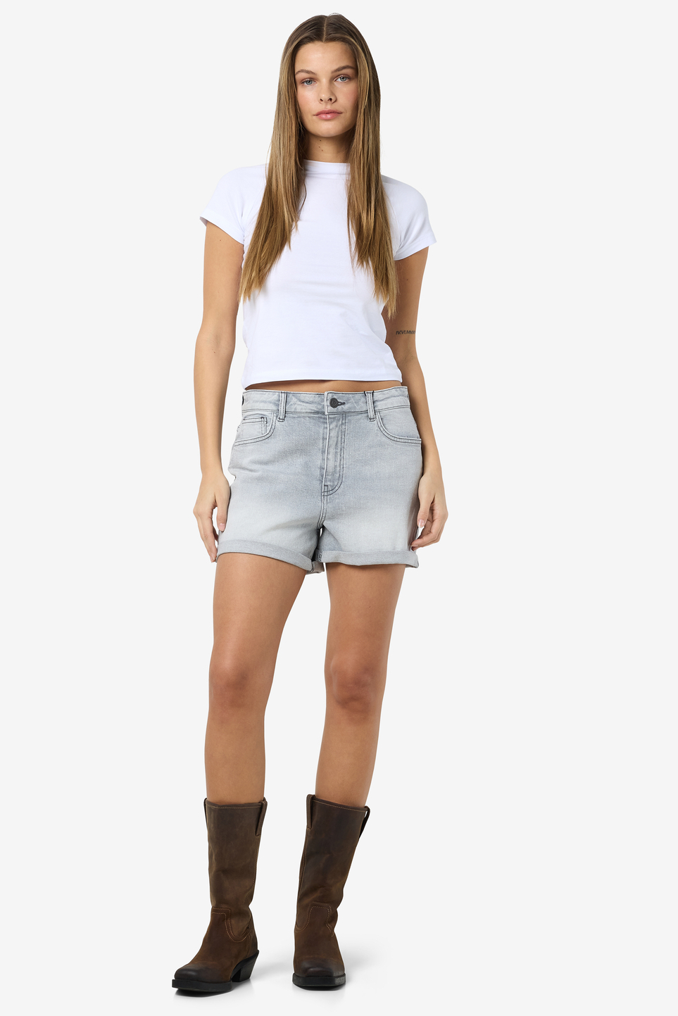 Deze stijlvolle denim korte broek van Noisy May is de perfecte toevoeging aan je zomergarderobe. De lichtgrijze kleur met een bleached wash geeft je outfit een frisse en moderne look. De broek heeft een regular fit en een high waist, wat zorgt voor comfort en een flatterende pasvorm. Dankzij de handige 5-pocket stijl kun je je essentials gemakkelijk meenemen. De combinatie van 99% katoen en 1% elastan biedt een fijne stretch en draagcomfort, ideaal voor iedere zomerse dag. Met zijn veelzijdige ontwerp is deze korte broek goed te combineren voor verschillende gelegenheden. Draag hem casual met een simpele tee en sandalen voor een dagje in de stad, of kleed hem wat meer aan met een blouse en sneakers voor een brunch met vrienden. De knoop en ritssluiting zorgen voor een klassieke afwerking, terwijl de omgeslagen zoom een extra stijlvol detail toevoegt. Of je nu naar het park gaat of een zomerse barbecue hebt, deze shorts van Noisy May laten je er altijd goed uitzien.