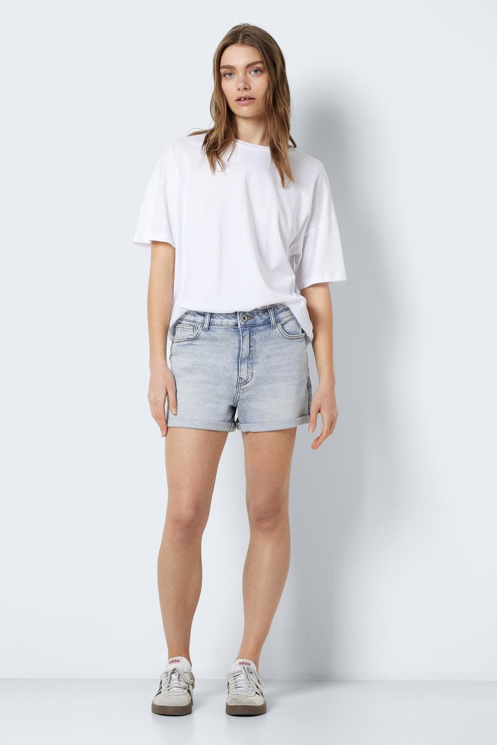 Deze lichte blauwe denim shorts van Noisy may zijn een onmisbare toevoeging aan je zomergarderobe. Met een regular fit en een high waist ontwerp, bieden deze shorts zowel stijl als comfort. De bleached wash geeft een casual en frisse uitstraling, ideaal voor een ontspannen zomerdag. De 5-pocketstijl zorgt ervoor dat je je essentials altijd bij de hand hebt, terwijl de knoop- en ritssluiting een klassieke touch toevoegt. Gemaakt van 99% katoen en 1% elastan, zijn deze shorts niet alleen comfortabel, maar ook licht elastisch, wat zorgt voor een aangename bewegingsvrijheid. Perfect voor een dagje strand, een zomerse wandeling of een festival, deze Noisy may shorts passen perfect bij een simpel T-shirt of een luchtige blouse. Of je nu kiest voor sneakers of sandalen, je kunt eindeloos combineren met deze veelzijdige shorts.