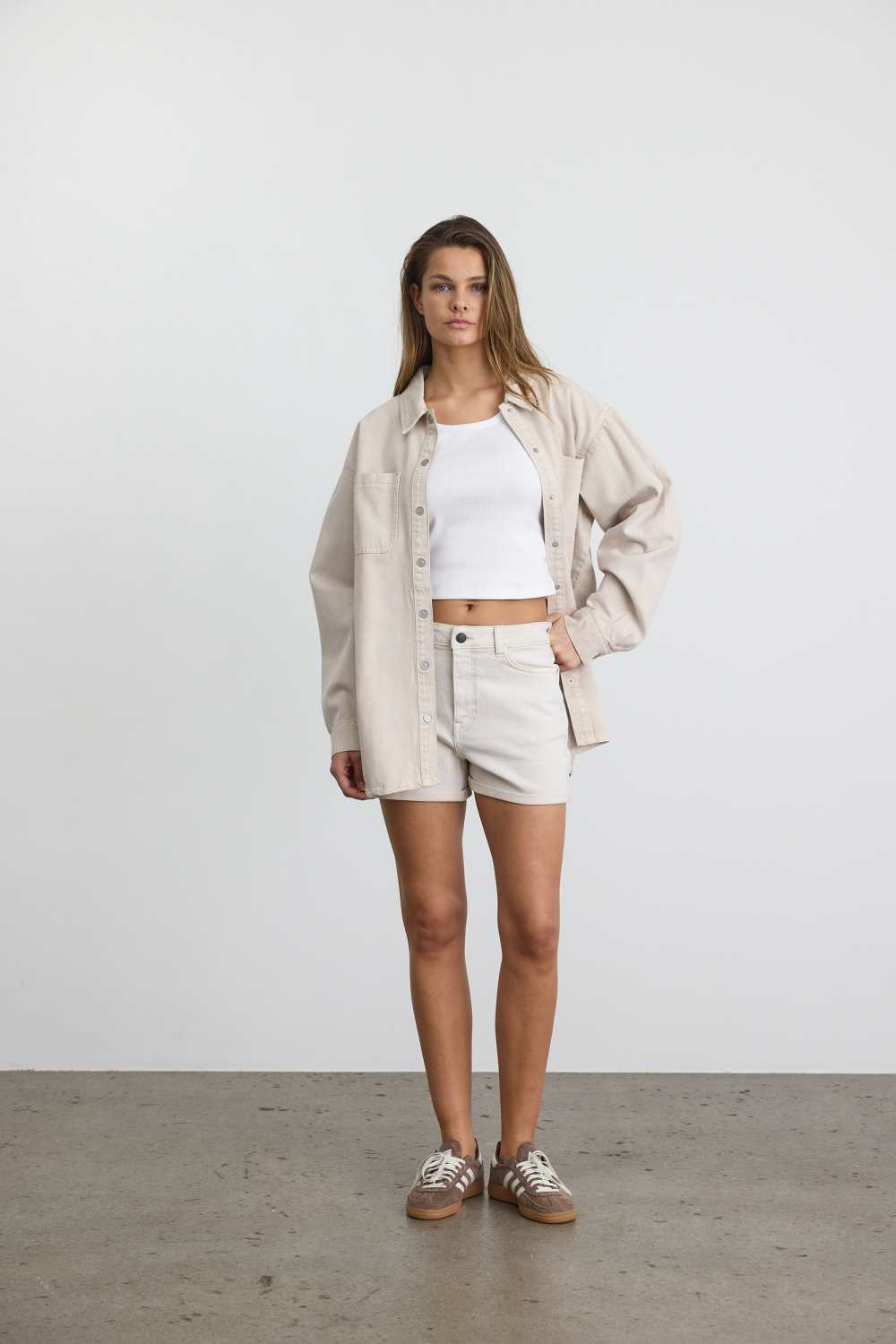 Deze stijlvolle denim korte broek van Noisy May combineert een moderne uitstraling met comfort. Gemaakt van 99% katoen en 1% elastan, biedt de stof een lichte stretch die perfect is voor dagelijks gebruik in de lente. De regular fit pasvorm geeft een ontspannen draagervaring, terwijl de high waist zorgt voor een flatterende uitstraling. Met de subtiele tint van pumice stone past deze korte broek bij vele kleuren en stijlen, en de opgerolde zoom voegt een speels detail toe aan het geheel. Draag deze Noisy May korte broek tijdens een ontspannen dagje uit of casual weekendactiviteiten. De 5-pocket stijl maakt het functioneel en modieus, perfect om te combineren met je favoriete T-shirt of blouse. Of je nu gaat voor een casual schoenen zoals sneakers of een meer geklede uitstraling met sandalen, deze korte broek biedt veelzijdigheid in je garderobe. Een ideale keuze voor zonnige dagen waarbij comfort en stijl hand in hand gaan.