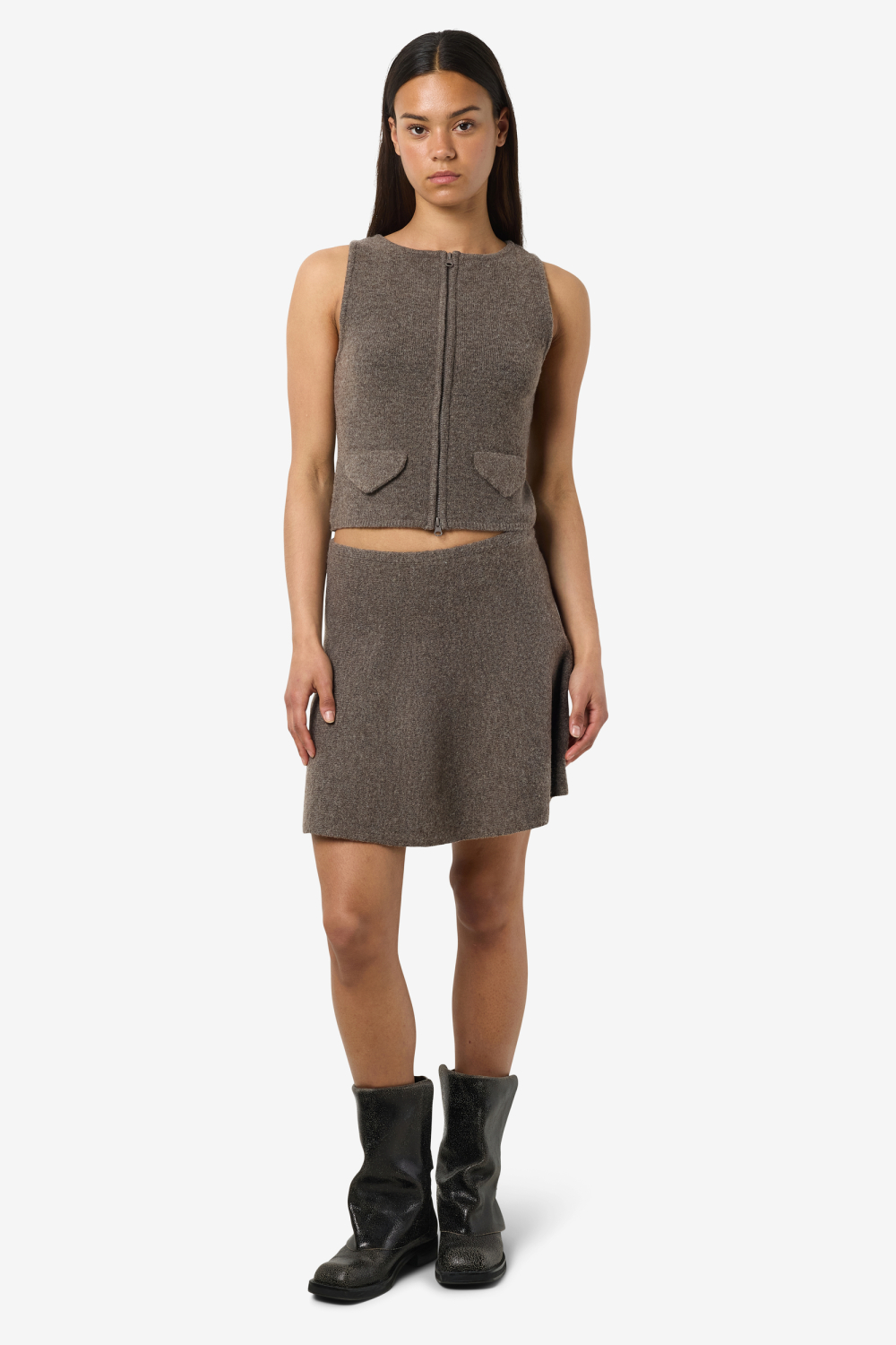 Deze modieuze korte rok van Noisy May, uitgevoerd in de kleur MOREL/MELANGE, is een perfecte aanvulling op je wintergarderobe. Het gemêleerde patroon geeft de rok een elegante uitstraling, terwijl de regular fit en elastische boord zorgen voor een comfortabele pasvorm. De knitwear stijl maakt deze rok ideaal voor koude dagen, waarbij je zowel stijlvol als warm gekleed bent. Het ontwerp combineert moeiteloos een chique uitstraling met praktisch comfort.