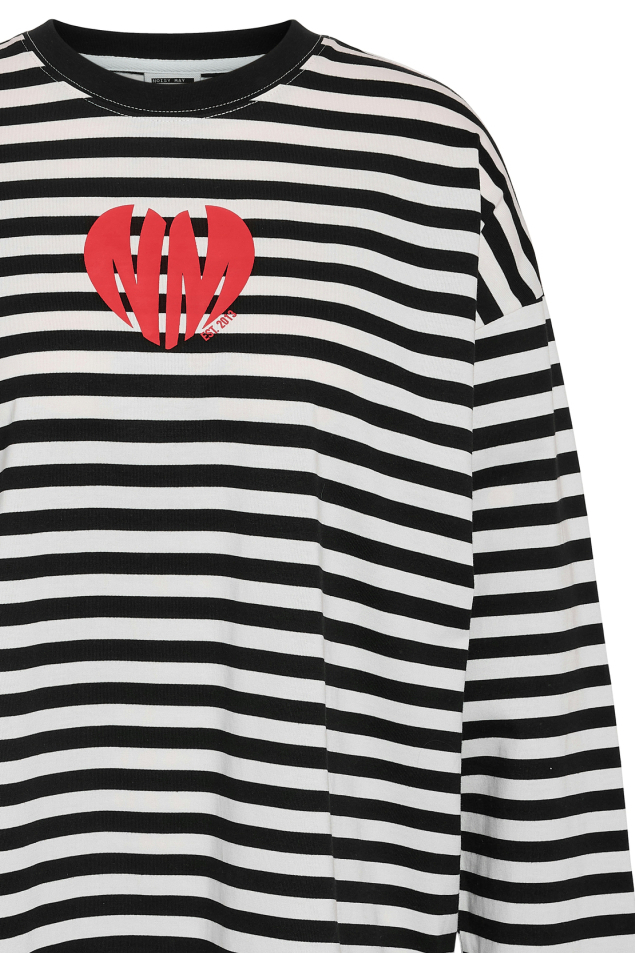 Dit casual T-shirt van Noisy may biedt een stijlvolle toevoeging aan je spring wardrobe. Met een opvallend streeppatroon in zwart en wit en een gedurfde rode accentprint op de borst, trekt het direct de aandacht. Het ontwerp met een ronde hals en lange mouwen maakt het geschikt voor milde lentedagen. De regular fit biedt comfort en een moeiteloze uitstraling, ideaal voor dagelijks gebruik. Gemaakt van een mix van 60% katoen en 40% polyester, garandeert dit T-shirt een zachte en duurzame stof voor langdurig draaggemak. De normale lengte zorgt ervoor dat het gemakkelijk is te combineren met jeans of een casual rok. Of je nu een dagje uit plant met vrienden of gewoon een ontspannen dag thuis wilt doorbrengen, dit shirt is een praktische en stijlvolle keuze voor elke situatie.