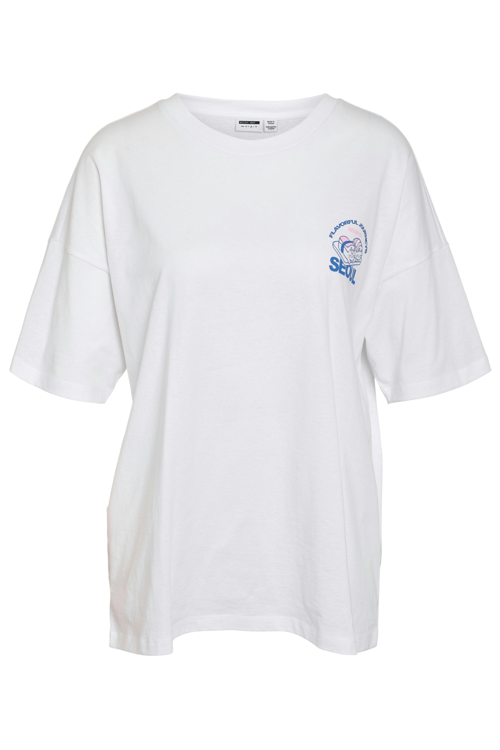 Het Noisy May T-shirt in de kleur Bright White/Korean Seoul is een casual aanvulling op je garderobe die zowel stijl als comfort biedt. Dit oversized dames T-shirt heeft een grafisch patroon dat een speelse uitstraling geeft, perfect voor een relaxte dag in de stad of een informele bijeenkomst. De ronde hals en korte mouwen dragen bij aan een nonchalante look, terwijl de normale lengte zorgt voor een veelzijdige pasvorm. Het T-shirt is gemaakt van 100% katoen en voelt daardoor heerlijk zacht aan op de huid, ideaal voor de herfst.