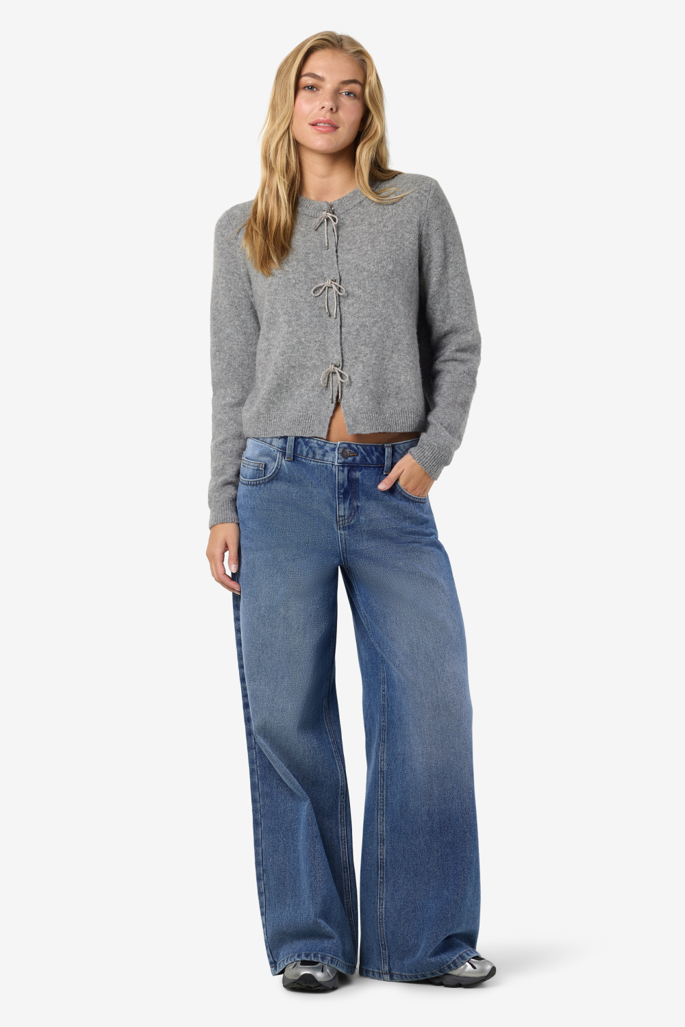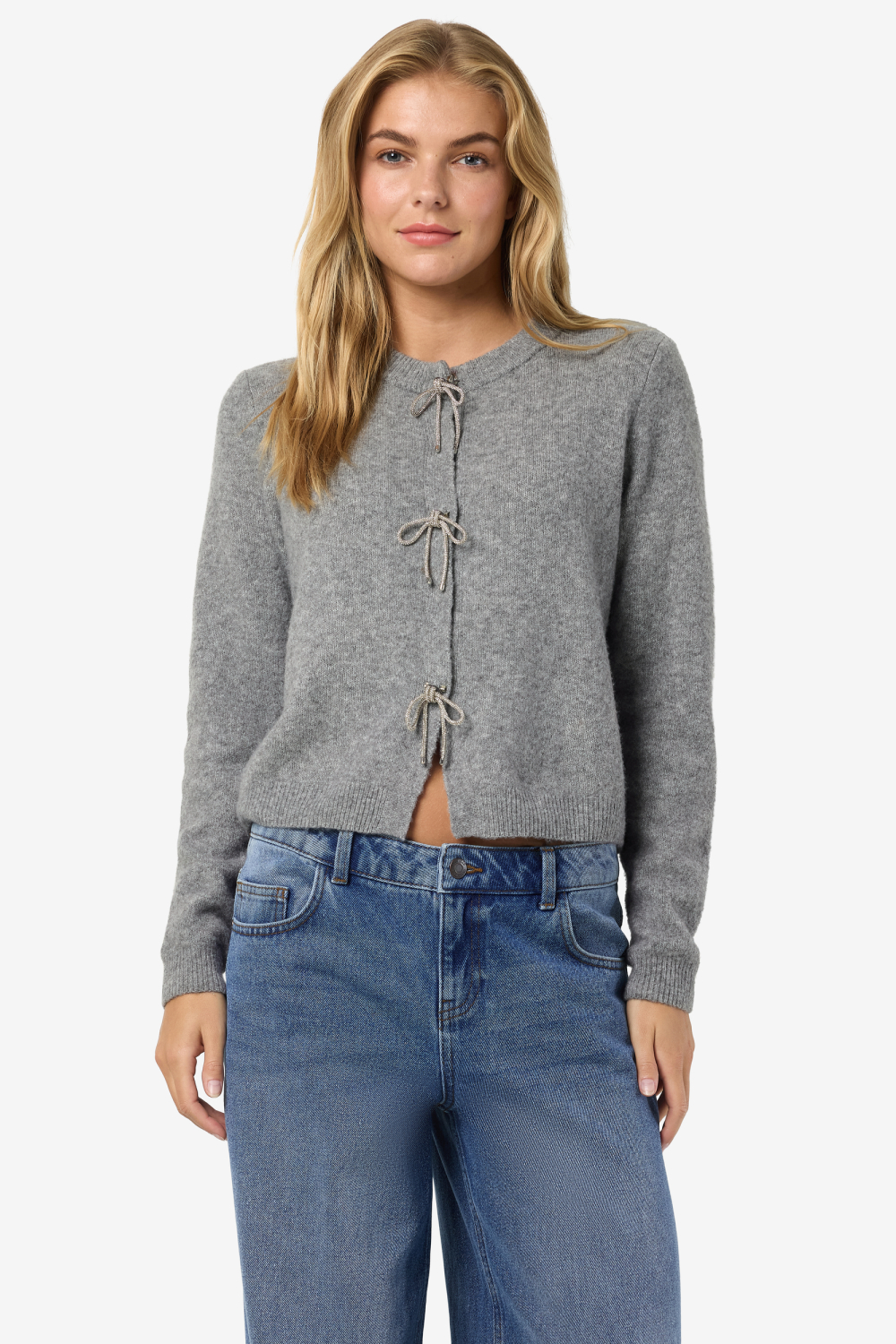 Met dit gemêleerde grijze vest van Noisy May voeg je een vleugje verfijning toe aan je wintergarderobe. Dit damesvest kenmerkt zich door een regular fit met een ronde hals en is voorzien van stijlvolle drukknoopsluitingen die een speelse touch geven aan het geheel. Gemaakt van hoogwaardig knitwear, biedt het een comfortabele en warme pasvorm die perfect is voor de koude seizoenen. De unieke strikdetails aan de voorkant geven dit vest een subtiele maar opvallende uitstraling. Dit vest is een veelzijdige toevoeging aan jouw dagelijkse outfits. Draag het met een eenvoudige jeans voor een casual look, of combineer het met een rok en laarzen voor een meer geklede gelegenheid. De klassieke kleur maakt het eenvoudig te combineren met diverse stijlen en outfits. Of je nu een drukke dag op kantoor hebt of een ontspannen weekend, dit vest van Noisy May is een stijlvolle keuze die zorgt voor comfort en een trendy uitstraling.