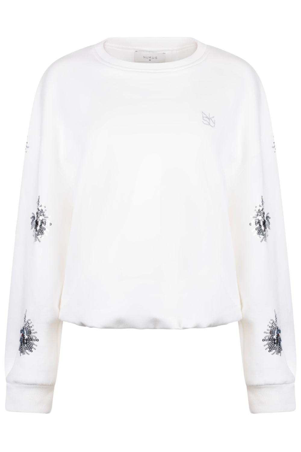 Deze elegante Nukus sweater voor dames is een subtiele toevoeging aan je lente-garderobe. Gemaakt van een mix van 50% viscose, 45% polyester en 5% elastan, biedt het niet alleen een heerlijk draagcomfort, maar ook de perfecte pasvorm dankzij de regular fit. De sweater heeft een moderne, ronde halslijn en komt tot net boven de heupen. De zachte witte tint in combinatie met de unieke pailletten op de mouwen geeft een speelse, maar toch verfijnde uitstraling. De lange mouwen maken de sweater ideaal voor de wat koelere lentetemperaturen, terwijl het casual design veelzijdig te combineren is. Of je nu kiest voor een comfy jeans tijdens een dagje uit, of het combineert met een chique rok voor een informele werkdag, deze Nukus sweater past zich moeiteloos aan elke situatie aan. Het paillettenpatroon zorgt voor net dat extra beetje flair, zodat je outfit nooit saai is. Voeg flair toe aan je dagelijkse look met deze stijlvolle trui.