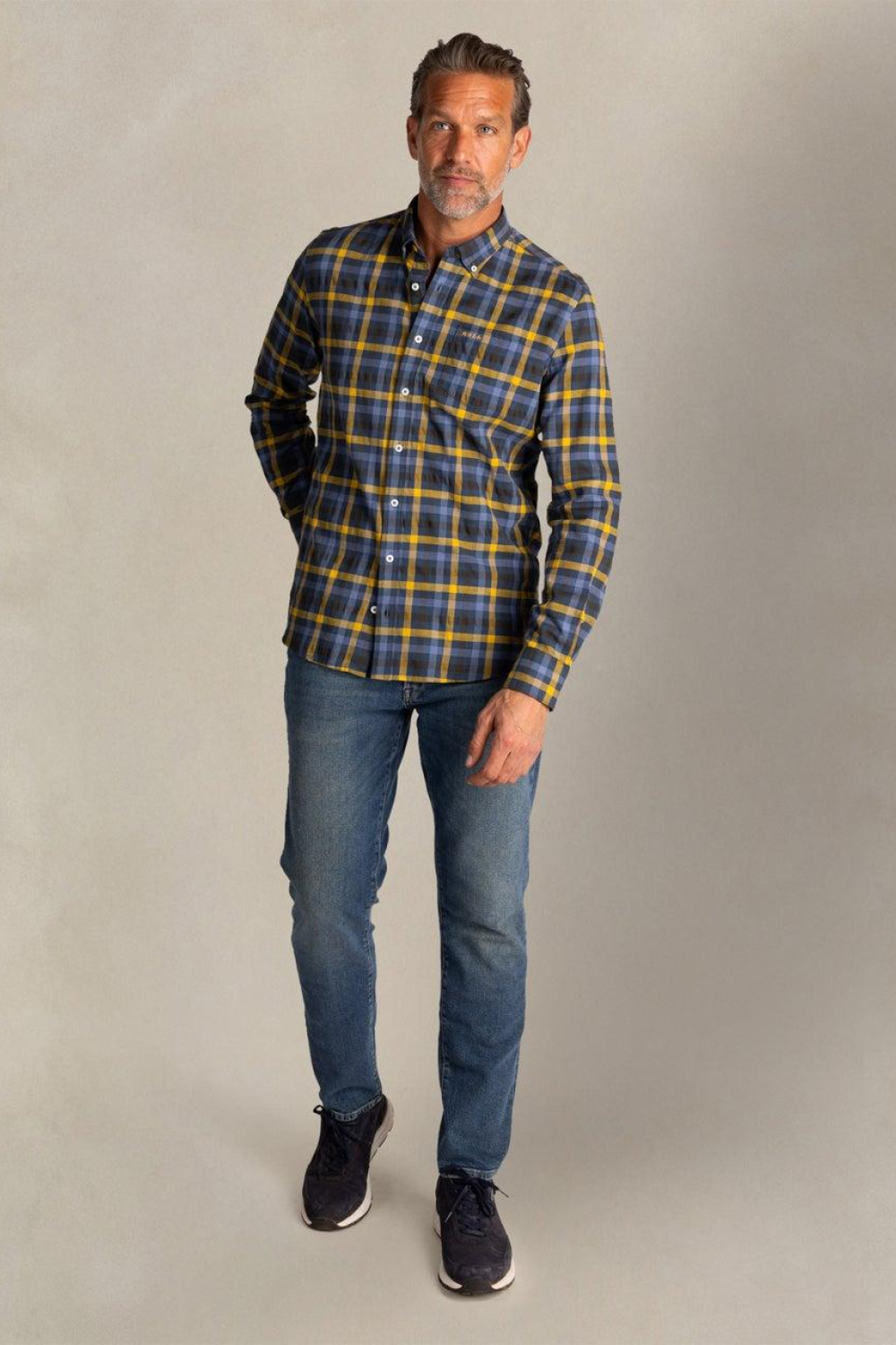 Dit casual NZA overhemd biedt een perfecte balans tussen comfort en stijl. Het herkenbare geblokte patroon in blauw en geel maakt het een opvallende keuze voor elke moderne garderobe. Dankzij de regular pasvorm zit het heerlijk en biedt het voldoende bewegingsvrijheid. De button-down kraag en de witte knopen geven een klassieke twist aan dit eigentijdse ontwerp. Het subtiele NZA logo op de borstzak voegt een extra vleugje karakter toe. De combinatie van 97% katoen en 3% elastan zorgt ervoor dat het overhemd zacht aanvoelt en meebeweegt. Ideaal voor de herfst, dit overhemd is veelzijdig genoeg voor zowel informele als semi-formele gelegenheden. Draag het naar een ontspannen lunchafspraak of een avondje uit, gecombineerd met je favoriete jeans voor een complete look. Met zijn lange mouwen en normale lengte kun je dit NZA overhemd gemakkelijk in je dagelijkse outfits integreren, zonder in te boeten op stijl of comfort. Laat je inspireren door de levendige kleuren en maak een statement, elke keer dat je het draagt.