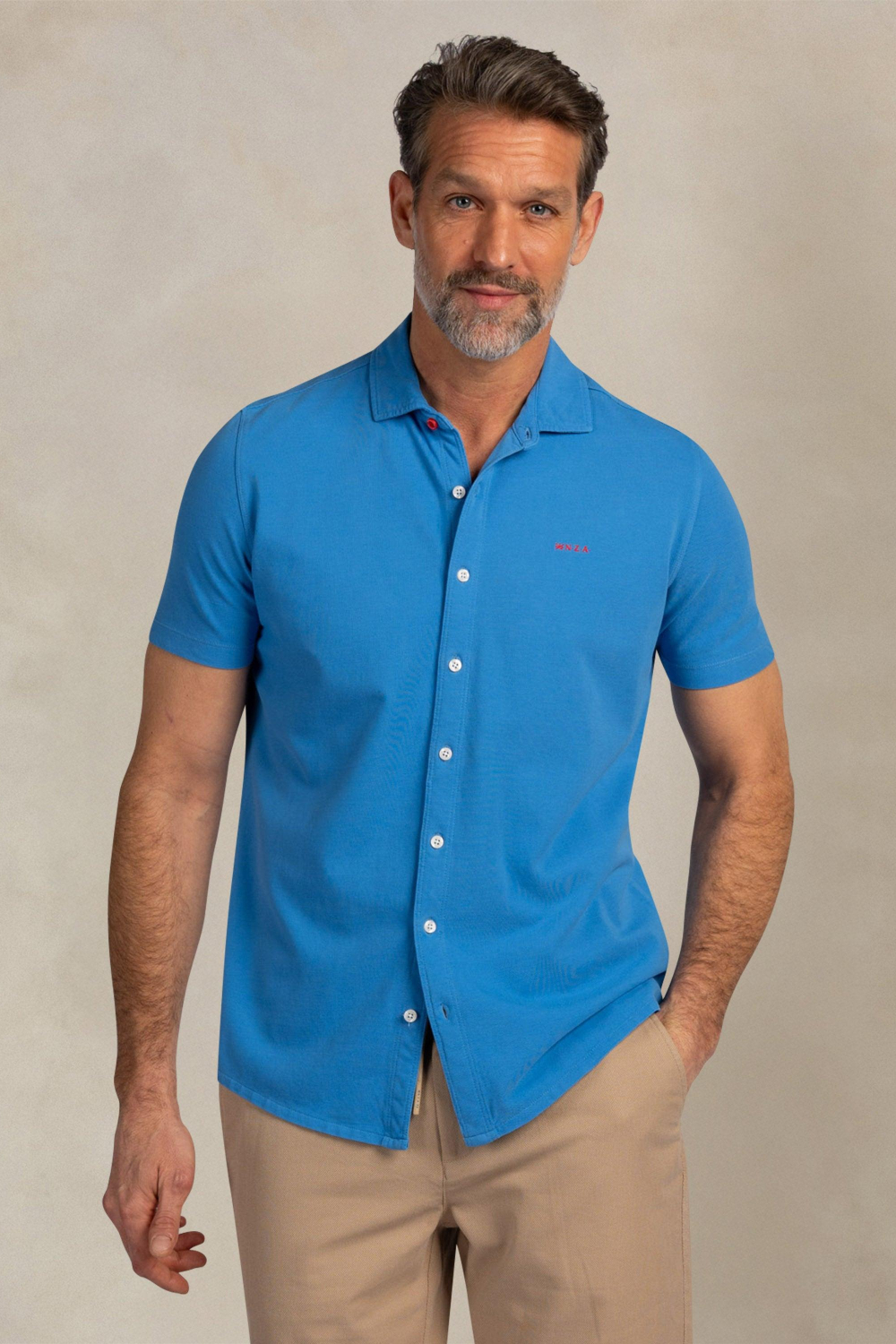 Dit casual blauwe overhemd van NZA is een uitstekende keuze voor de lente. Het is gemaakt van 100% katoen, wat je een comfortabel en luchtig gevoel geeft tijdens de warmere dagen. Dit overhemd heeft een regular fit, zodat je zowel stijlvol als comfortabel voor de dag komt. Het heeft een klassieke puntkraag en een knoopsluiting die het geheel een nette uitstraling geven. De subtiele rode NZA logo op de borst zorgt voor een smaakvolle, stijlvolle touch. Met de korte mouwen en normale lengte is dit overhemd ideaal voor zowel casual als iets meer formele gelegenheden. Denk aan een ontspannen dagje uit, een barbecue met vrienden, of zelfs een informeel dagje op kantoor. Je kunt het shirt makkelijk combineren met een lichte chino of een spijkerbroek voor een casual look. Of je nu gaat voor ontspannen of chic, dit overhemd biedt je de veelzijdigheid die je zoekt.