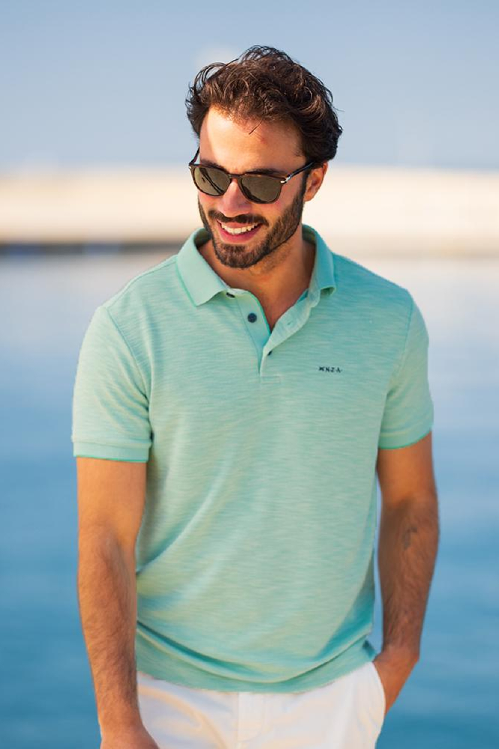 Deze casual polo van NZA is een veelzijdige aanvulling op de garderobe van elke man. Het gemêleerde patroon en de frisse groene tint geven deze polo een moderne uitstraling, ideaal voor de lente. De regular fit zorgt voor een comfortabele pasvorm, terwijl de puntkraag en de knoopsluiting een klassieke touch toevoegen. Gemaakt van een duurzame stof, biedt deze polo een milieubewuste keuze zonder in te boeten op stijl. Perfect voor een dagje uit of een informele bijeenkomst. Dankzij de korte mouwen en normale lengte is deze NZA polo een geschikte optie voor zowel casual als smart-casual settings. Draag hem bijvoorbeeld met een lichte jeans of een zomerse chino voor een ontspannen look. De subtiele merknaam aan de voorkant voegt een extra detail toe aan dit tijdloze kledingstuk, waardoor het een must-have is voor diverse gelegenheden. Deze polo zorgt ervoor dat je er moeiteloos verzorgd uitziet, ongeacht de situatie.
