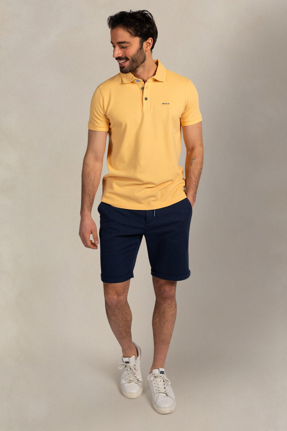Deze stijlvolle gele polo van NZA is een onmisbare toevoeging aan je garderobe. Met een regular fit pasvorm biedt deze polo een comfortabel gevoel en een moderne look. Het hoogwaardige materiaal van 98% katoen en 2% elastan garandeert een lichte stretch en ademend vermogen, ideaal voor een warme lentedag. De klassieke puntkraag en de subtiele knoopsluiting voegen een verfijnde touch toe aan het alledaagse ontwerp, terwijl het borduurlogo voor een kenmerkend detail zorgt. De NZA polo is perfect voor casual gelegenheden en laat zich gemakkelijk combineren met zowel jeans als shorts voor een relaxte stijl. De korte mouwen en normale lengte maken deze polo veelzijdig, waardoor hij zowel geschikt is voor een dag op kantoor als een ontspannen middag in het park. De levendige gele kleur geeft je look een frisse uitstraling, passend bij het seizoen. Deze polo is de ideale keuze voor wie comfort en stijl wil samenbrengen.