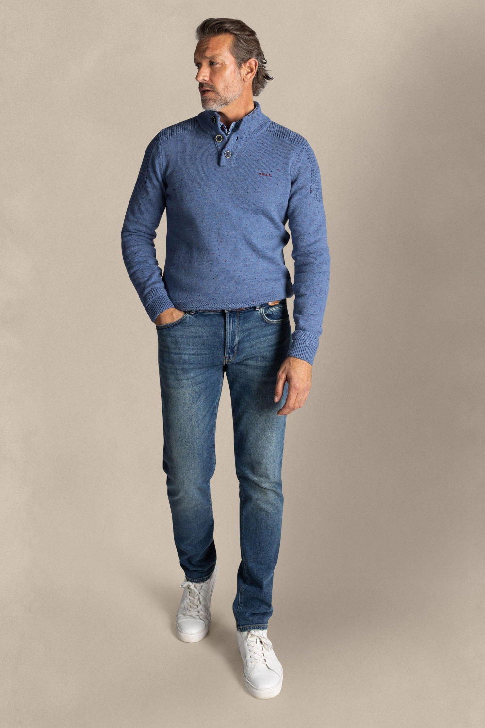 Deze gemêleerde trui van NZA, uit de knitwearcollectie, biedt een perfecte combinatie van stijl en comfort voor de herfstdagen. Met een regular pasvorm en gemaakt van een hoogwaardige mix van katoen, acryl en polyester, voelt deze herentrui zacht aan op de huid. De fijne blauwe tint, samen met subtiele kleuraccenten in het patroon, geeft een eigentijdse uitstraling. De high neck met knoopsluiting zorgt voor extra warmte en geeft de trui een verfijnde finish.