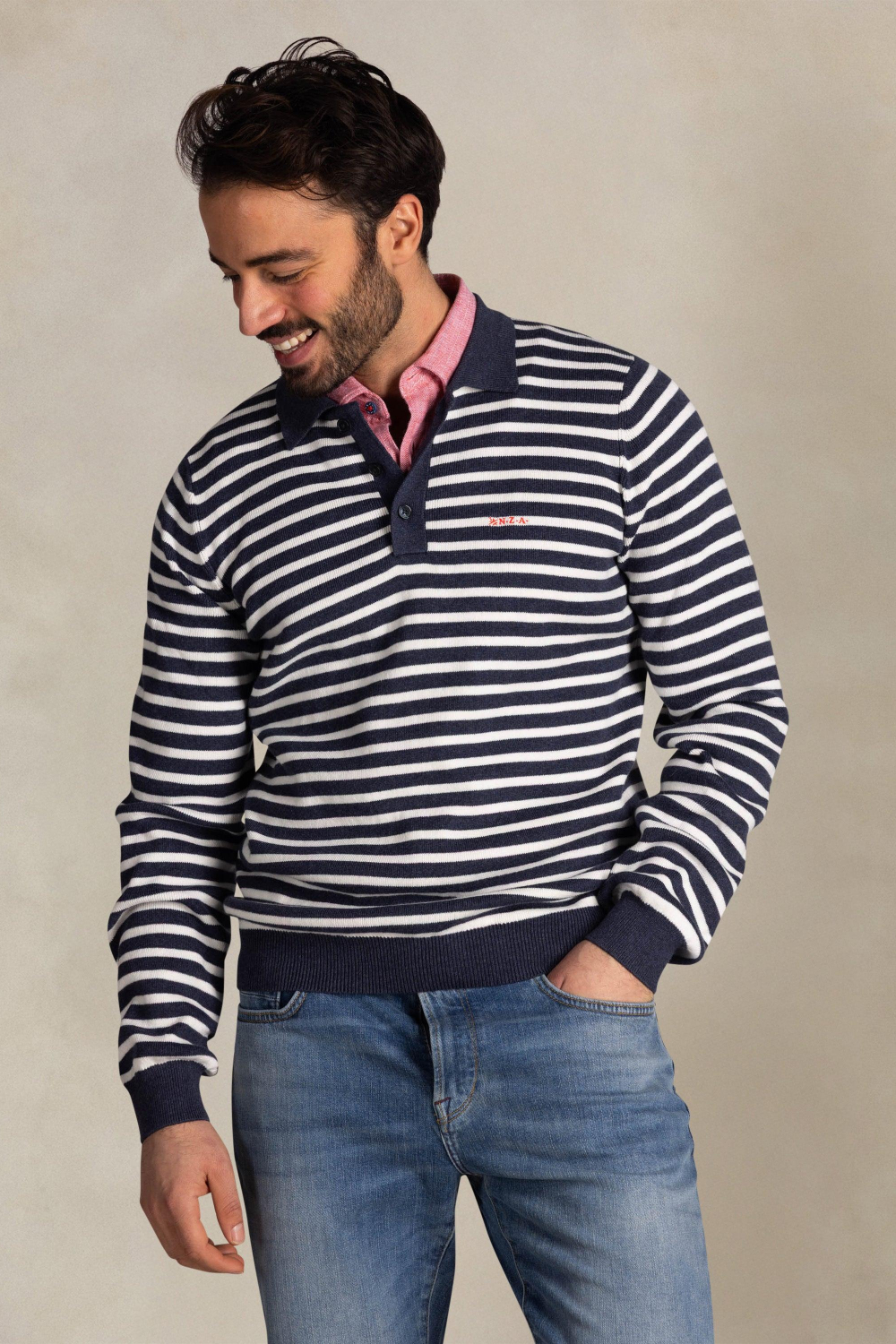 Deze gebreide trui van NZA is een veelzijdige toevoeging aan je lentegarderobe. Met een regular fit en een klassieke puntkraag biedt de trui een comfortabele en casual look. Het streepjespatroon in navy en wit zorgt voor een tijdloze uitstraling die zich uitstekend leent voor uiteenlopende gelegenheden. De knoopsluiting en lange mouwen geven het geheel een extra touch van verfijning. Gemaakt van 100% katoen, voelt de stof zacht aan op de huid en is ideaal voor de mildere dagen. De NZA trui is ideaal voor informele uitstapjes, zoals een middagje op de boot of een ontspannen weekendwandeling. Combineer hem met een lichte jeans voor een frisse, modieuze look die zowel stijlvol als comfortabel is. Dankzij de normale lengte valt de trui mooi op elke broek. Of je nu geniet van een zomerse brunch of een wandeling langs de kust, deze trui biedt een stijlvolle oplossing voor elke casual situatie.