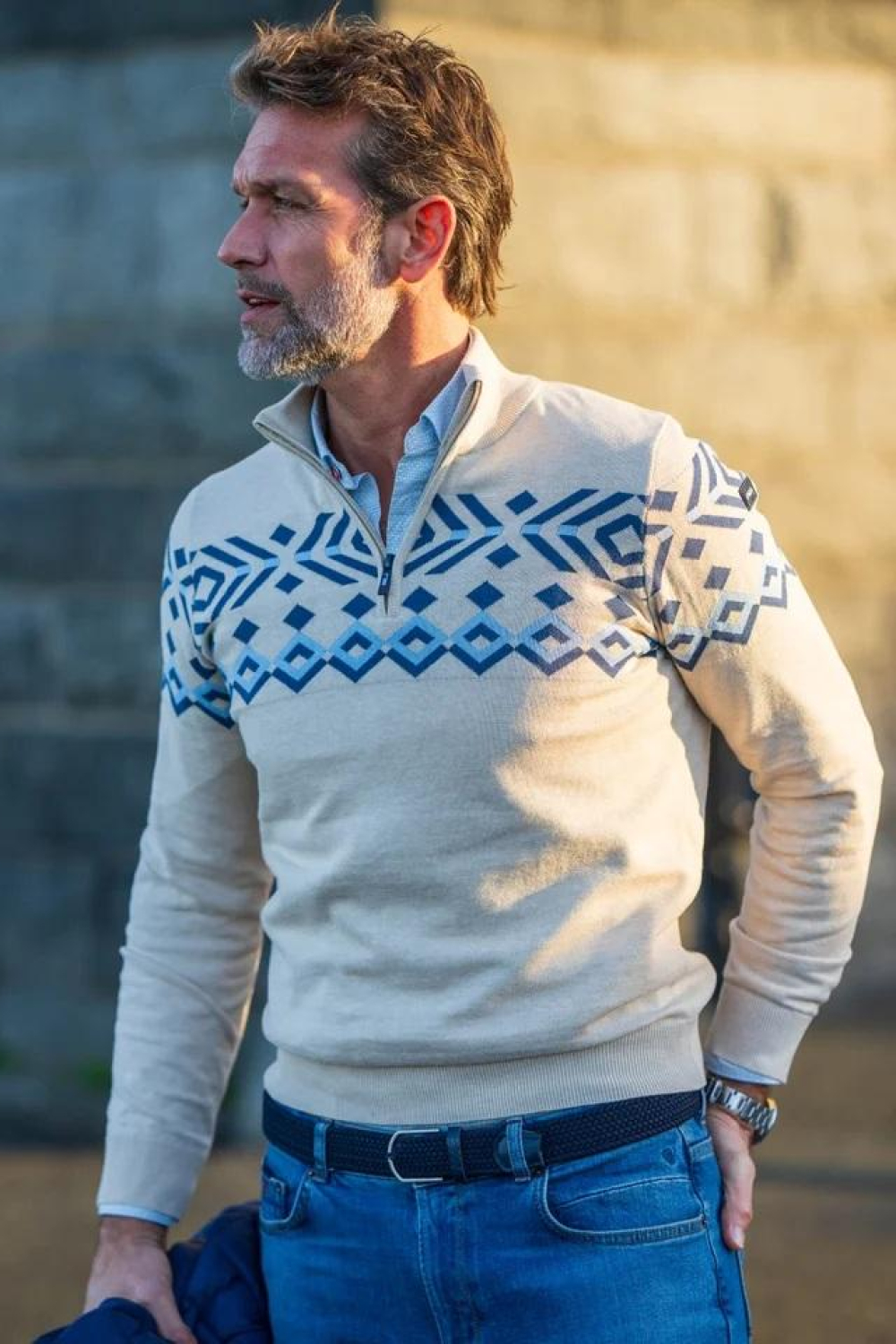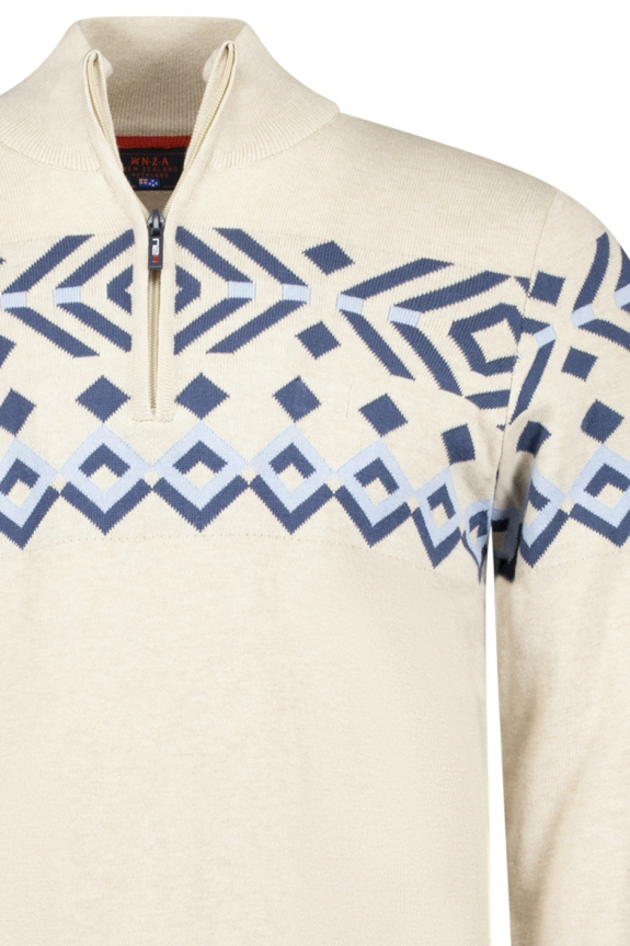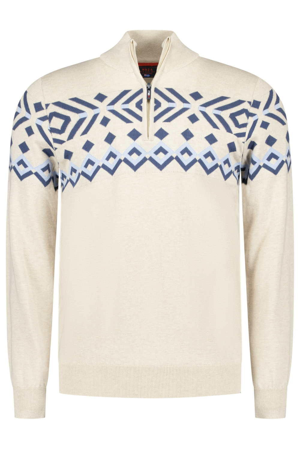 Deze lichte clay melange trui van NZA is een stijlvolle toevoeging aan je herfstgarderobe. Gemaakt van 100% katoen, biedt de trui een zachte en ademende stof die ideaal is voor de koelere maanden. Het grafische patroon in verschillende blauwtinten geeft de trui een moderne uitstraling, terwijl de high neck met ritssluiting zorgt voor extra comfort en warmte. De regular fit maakt deze trui geschikt voor diverse lichaamstypes.