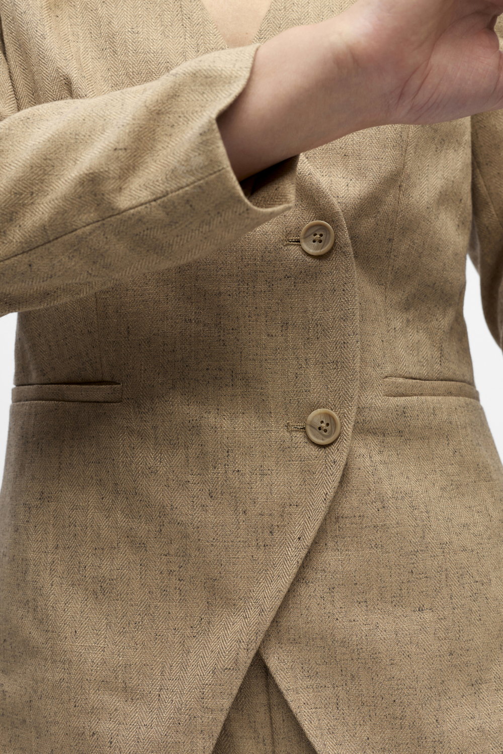 Deze elegante Tannin/Black melange blazer van Object is een stijlvolle aanvulling in je garderobe. Met zijn regular fit en klassieke V-hals biedt deze blazer een tijdloze look dat passend is voor zowel casual als zakelijke gelegenheden. Gemaakt van een hoogwaardige stofmix van 94% polyester en 6% linnen, voelt deze blazer comfortabel aan en heeft het een gemêleerd patroon dat zorgt voor een subtiele, verfijnde uitstraling. De blazer heeft praktische paspelzakken en een knoopsluiting, wat het een veelzijdig kledingstuk maakt. De halflange lengte en lange mouwen maken het perfect voor de herfst, en dankzij de polyester voering geeft het een luxe gevoel. Combineer deze blazer met een nette pantalon voor een zakelijke bijeenkomst of met een jeans voor een relaxte, maar stijlvolle casual look. Of je nu naar kantoor gaat of een avondje uit plant, deze blazer zorgt ervoor dat je er verzorgd uitziet.