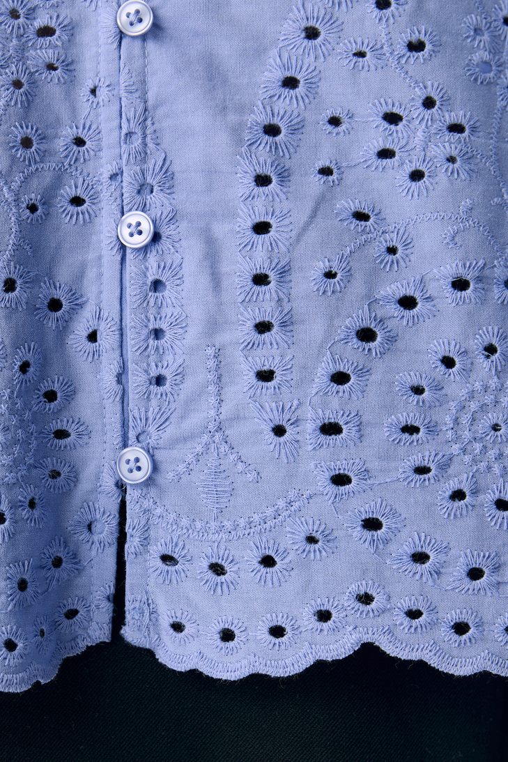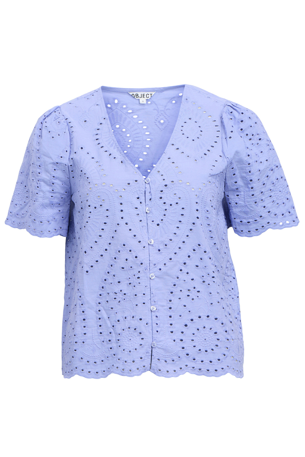 Deze zomerse blouse van Object valt op door het verfijnde ajourpatroon. Het lichtblauwe ontwerp met V-hals en een rij knopen biedt een frisse uitstraling die ideaal is voor casual dagen. De regular fit pasvorm zorgt voor een comfortabele draagervaring, terwijl de korte mouwen met subtiele plooien en geschulpte randen extra detail toevoegen. Gemaakt van 50% katoen en 50% biologisch katoen, draagt deze blouse bij aan een duurzamere garderobe. De blouse is perfect voor een relaxte stranddag of een ontspannen middag in het park. Combineer het met een lichte jeans of een zwierige rok voor een moeiteloze look. De normale lengte maakt het eenvoudig om in of over je kleding te dragen, afhankelijk van de stijl die je voor ogen hebt. Dit veelzijdige kledingstuk uit de collectie van Object voegt een vleugje zachtheid en elegantie toe aan elke outfit.