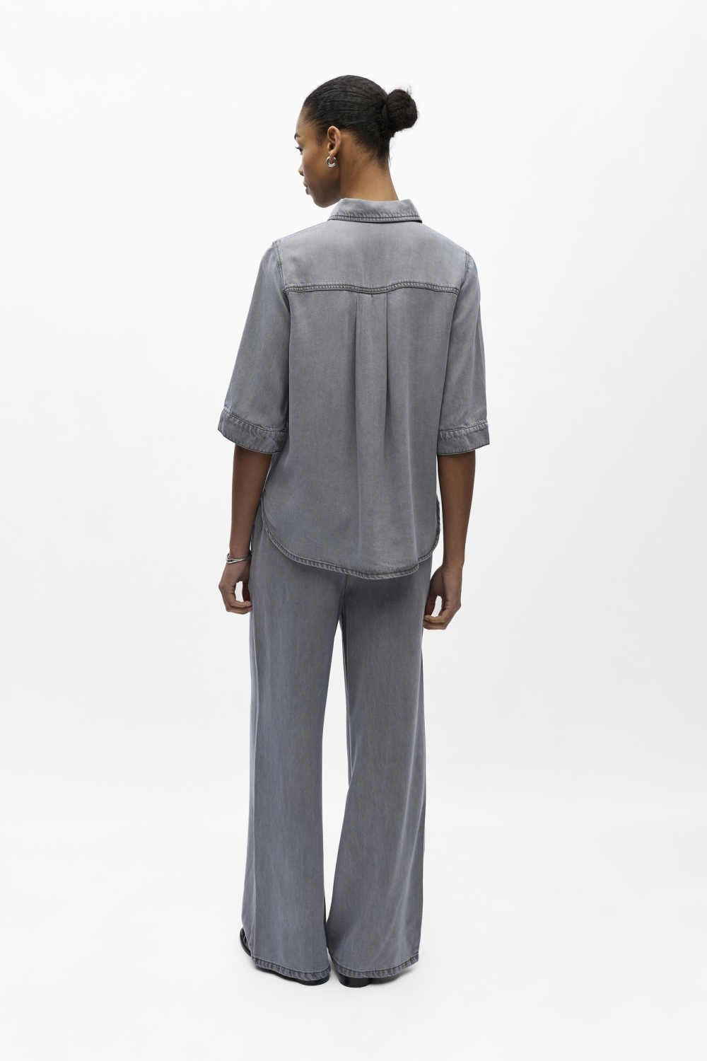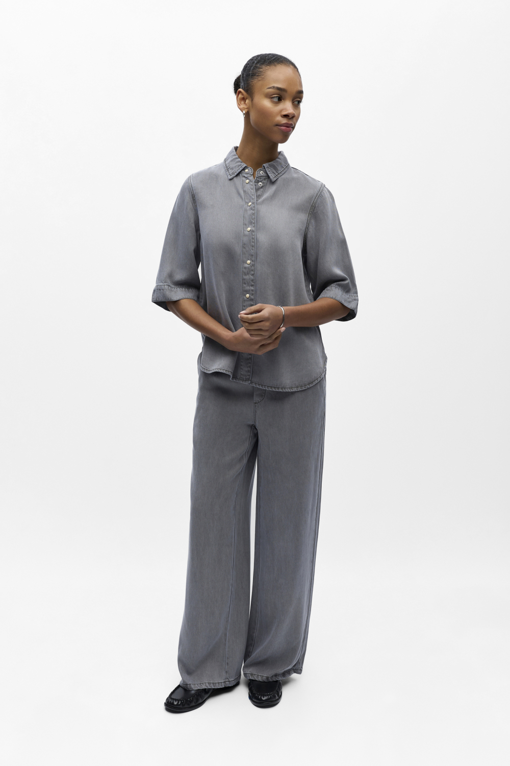 Deze elegante light grey denim blouse van Object is een perfecte keuze voor je wintergarderobe. Vervaardigd van 100% lyocell, biedt de stof een duurzame en comfortabele ervaring. De regular fit pasvorm samen met de korte mouwen en de nette puntkraag geven een moderne uitstraling, geschikt voor diverse gelegenheden. De knoopsluiting voegt een subtiele verfijning toe, wat deze blouse zowel praktisch als stijlvol maakt. Met zijn tijdloze denimstijl laat deze Object blouse zich gemakkelijk combineren, zowel met een klassiek rokje als met een casual jeans. Ideaal voor zowel een weekendbrunch als een informele werkdag. De rinsewash afwerking geeft het een verzorgde uitstraling, terwijl de normale lengte zorgt voor een prettige pasvorm. Dit veelzijdige kledingstuk past bij verschillende stijlen en behoudt zijn charme in elke situatie.