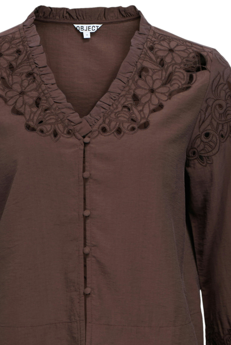 Deze stijlvolle damesblouse van Object combineert casual elegantie met comfort, dankzij de regular fit en het zachte materiaal van 85% viscose en 15% polyamide. De opvallende V-hals en de verfijnde knoopsluiting zorgen voor een moderne uitstraling, terwijl de sierlijke bloemenpatronen op de schouders en mouwen een artistiek element toevoegen. De lange mouwen maken het perfect voor het lenteseizoen, waarbij je het zowel op een frisse ochtend als een zonnige middag kunt dragen. Of je nu een dag op kantoor hebt of een gezellige lunch met vrienden plant, deze blouse is een veelzijdige keuze. De normale lengte zorgt ervoor dat je hem gemakkelijk kunt combineren met zowel een nette broek als een casual jeans. Met zijn subtiele details en comfortabele pasvorm is de Object blouse een stijlvolle toevoeging aan elke garderobe.