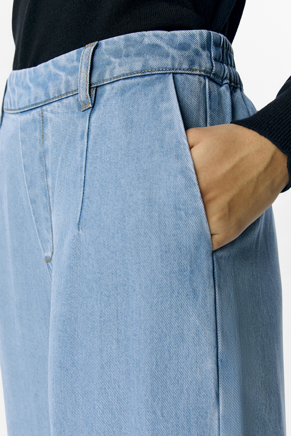 Deze stijlvolle light blue denim broeken van Object zijn een perfecte aanvulling op je lentegarderobe. De wide leg pasvorm en de regular waist zorgen voor een comfortabele en modieus nonchalante look. Gemaakt van 100% Lyocell, biedt deze broek een luxueus zacht gevoel en valt soepel om het lichaam. De bleached wash geeft het een frisse uitstraling die makkelijk te combineren is met diverse stijlen. De elastische boord draagt bij aan het draagcomfort, terwijl de subtiele steekzakken een praktisch element aanbrengen.